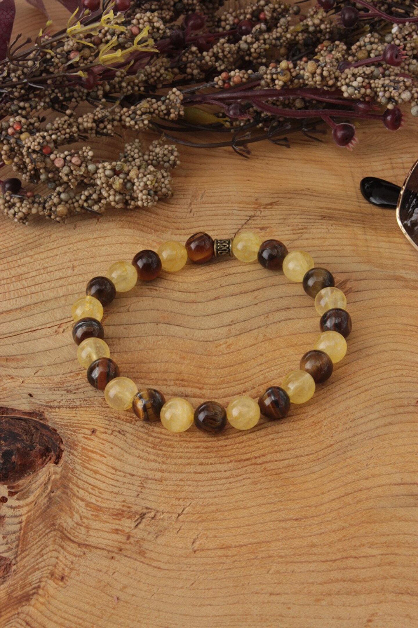 Dogal Taş Bileklik Zihin Duruluğu Kristal Kuvars ve Sitrin Birlikteliği 6mm AA Kaliteli Kristal