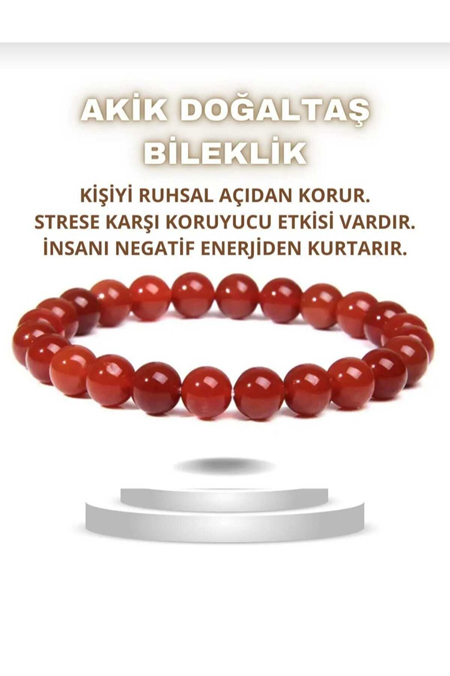 kırmızı akik 8mm doğal taş bileklik (sertifikalı)
