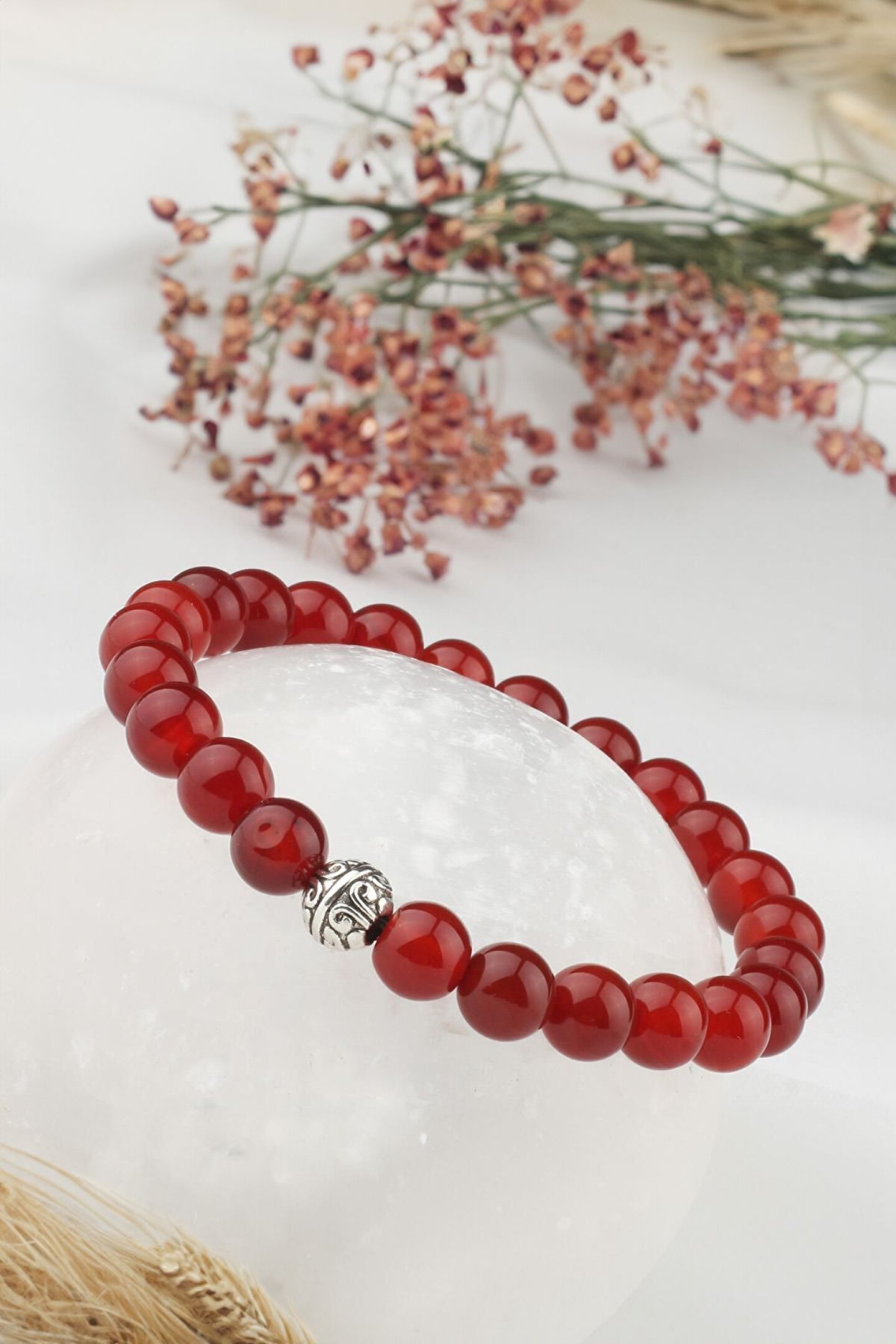Kırmızı Akik Taşlı Bileklik