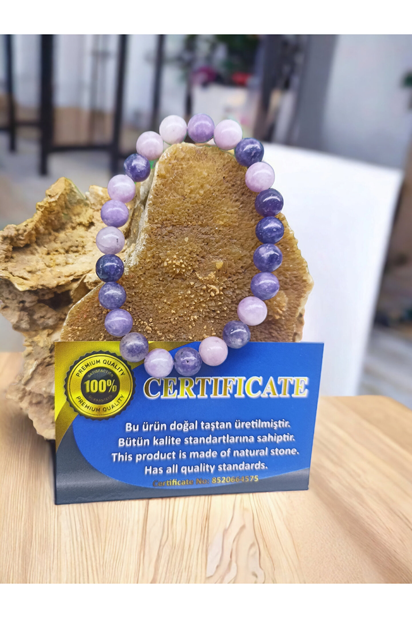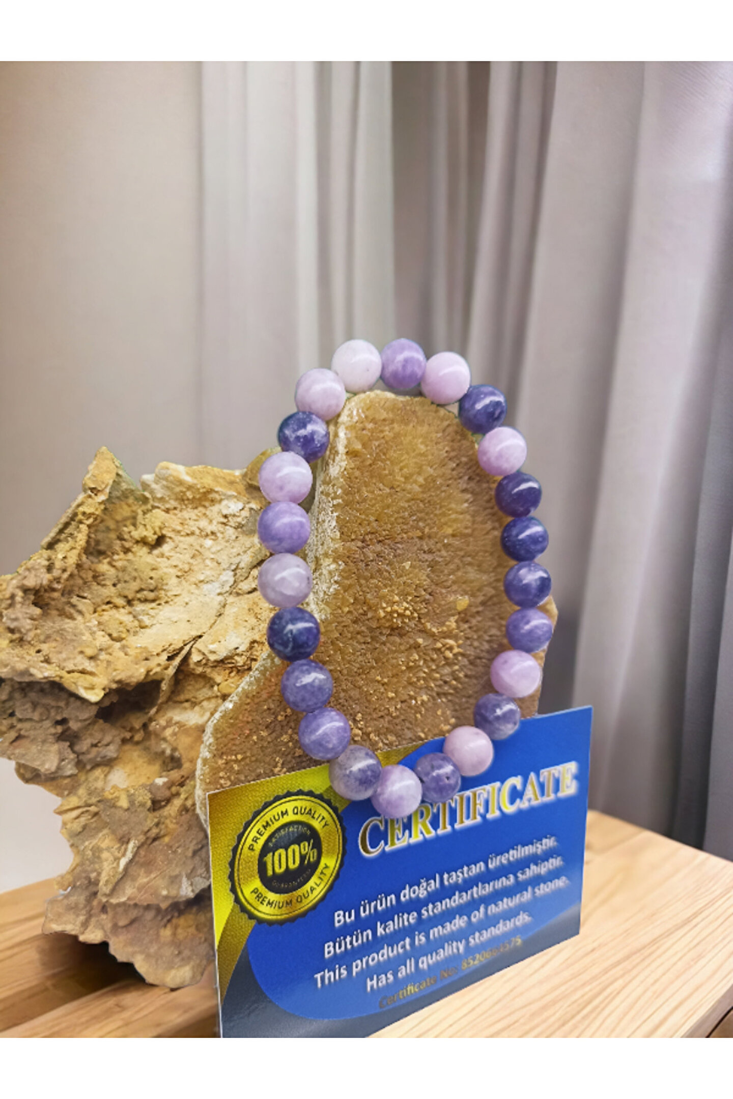 Doğal taş kullanımı sayesinde, her bileklik benzersiz ve otantik bir görünüm sunar; Sertifikalı yapısı ile kalite ve güvenilirlik konusunda endişelerinizi giderir; Doğal taş materyali, bilekliğin hem şık hem de dayanıklı olmasını sağlar;