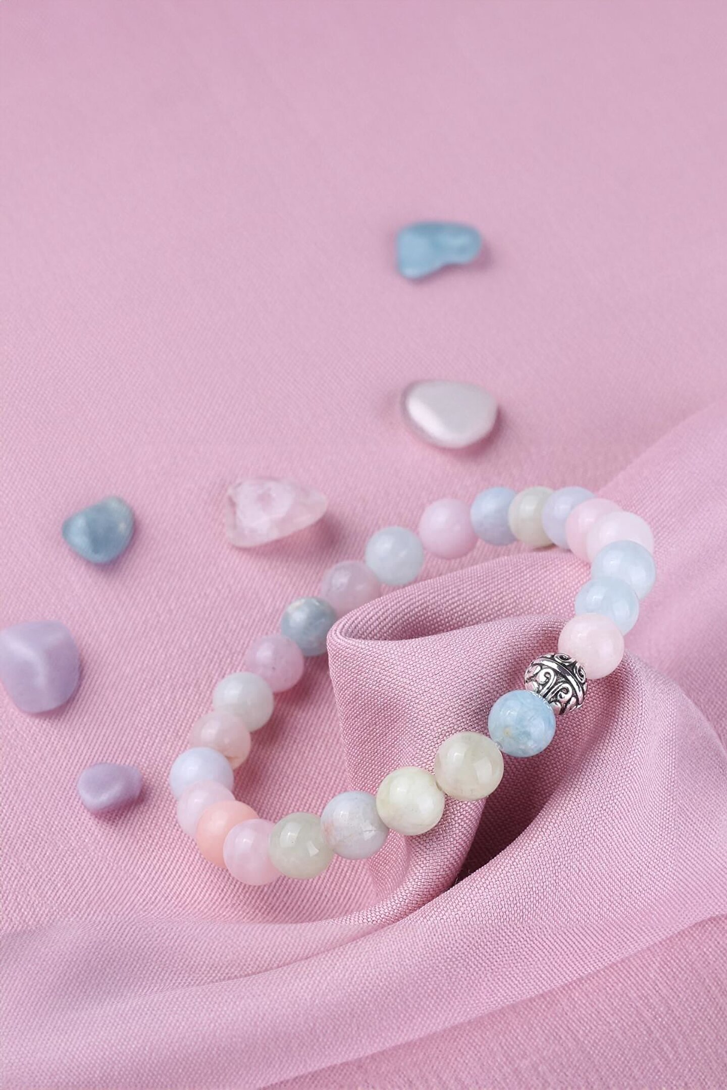 - Doğal taş kullanımı sayesinde her bileklik benzersiz ve otantik bir görünüm sunar; - Morganit taşı, zarif ve şık tasarımıyla dikkat çekerken, bileklikte doğal güzelliği ön plana çıkarır; - Doğal taş materyali ile hem dayanıklılık hem de estetik bir dokunuş sağlar;