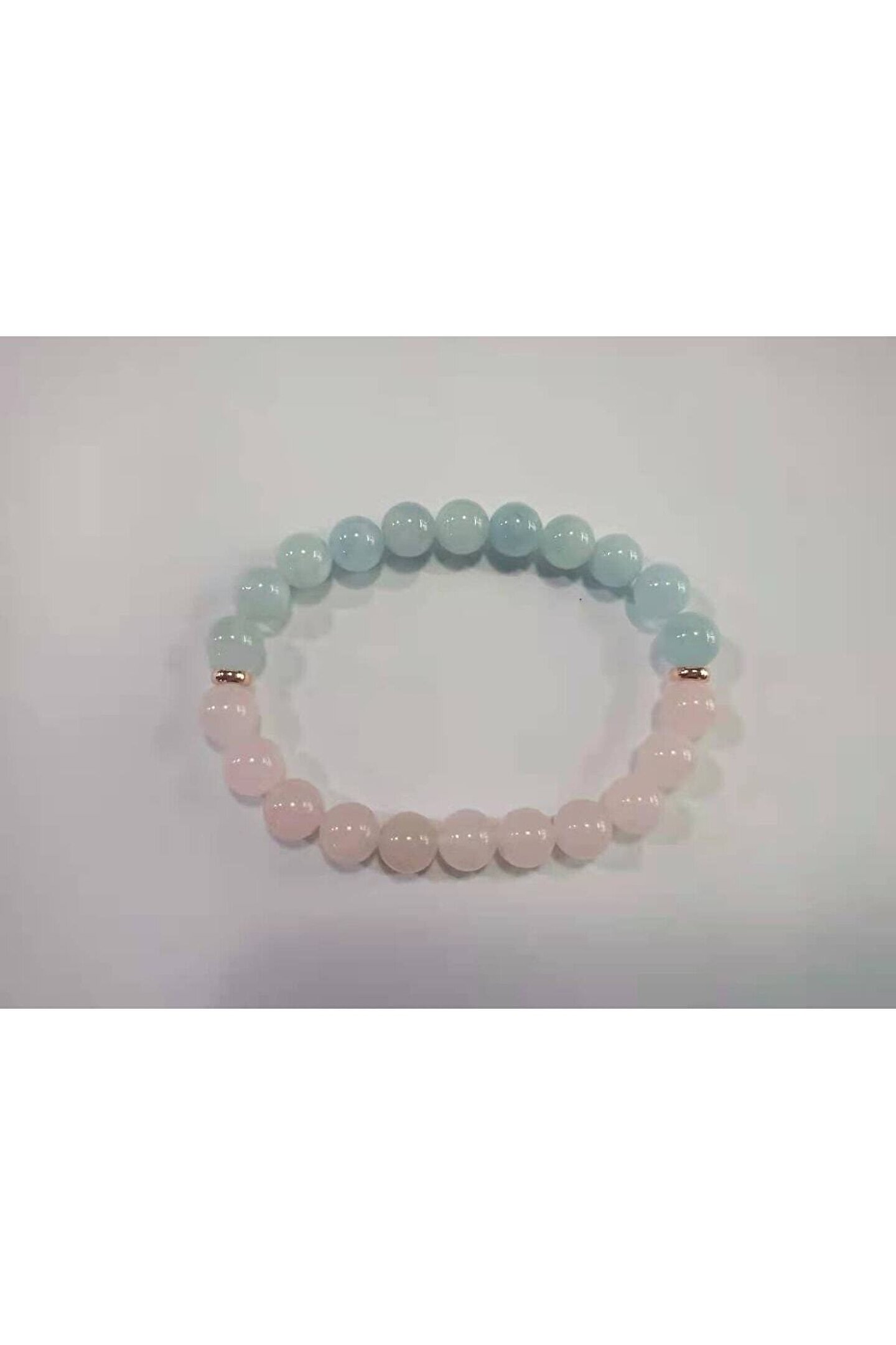 Pembe Kuvars & Akuamarin Doğal Taş Bileklik 8mm
