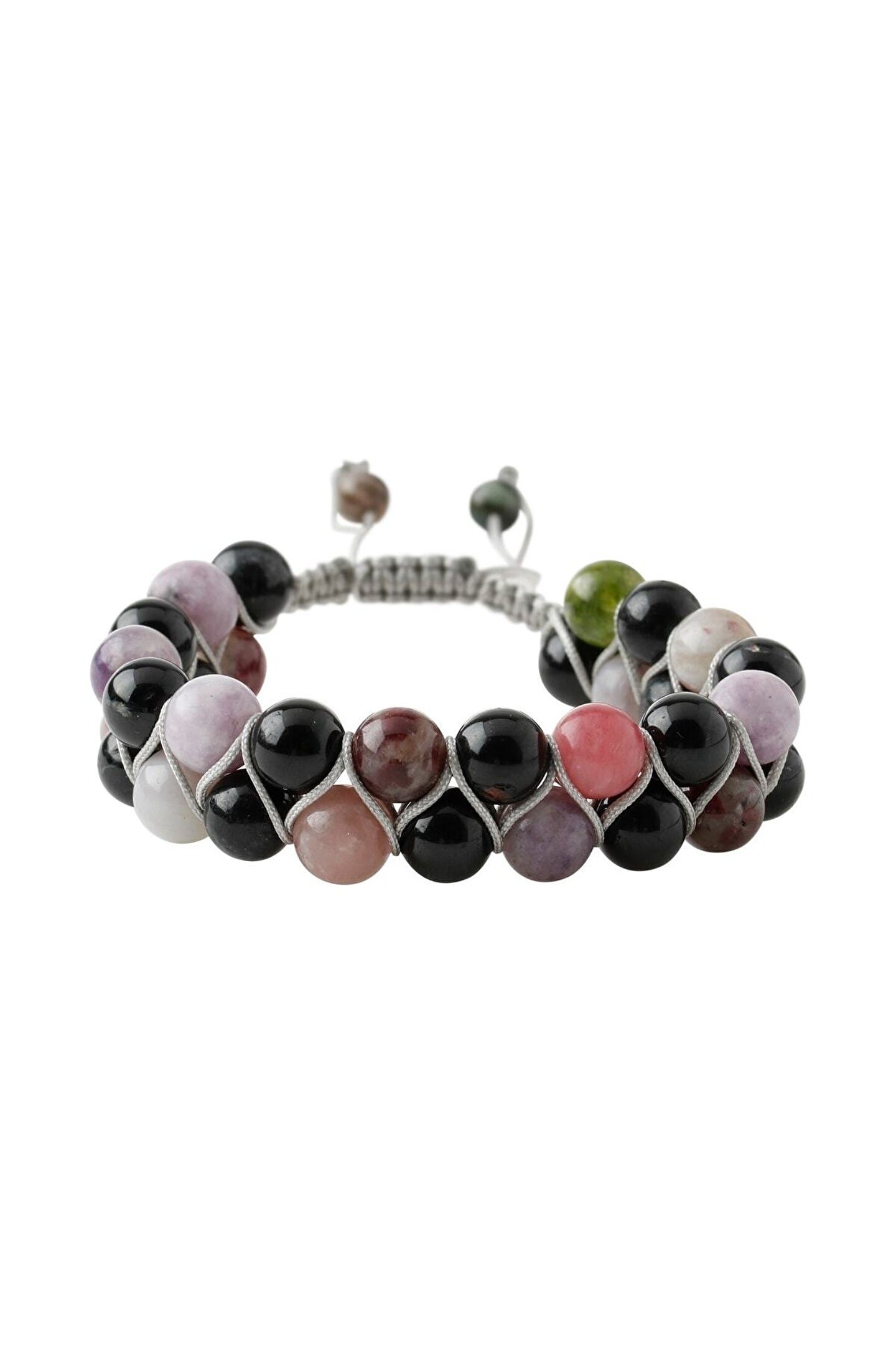 Renkli Turmalin 8 mm Çift Sıra Makrome Doğal Taş Bileklik