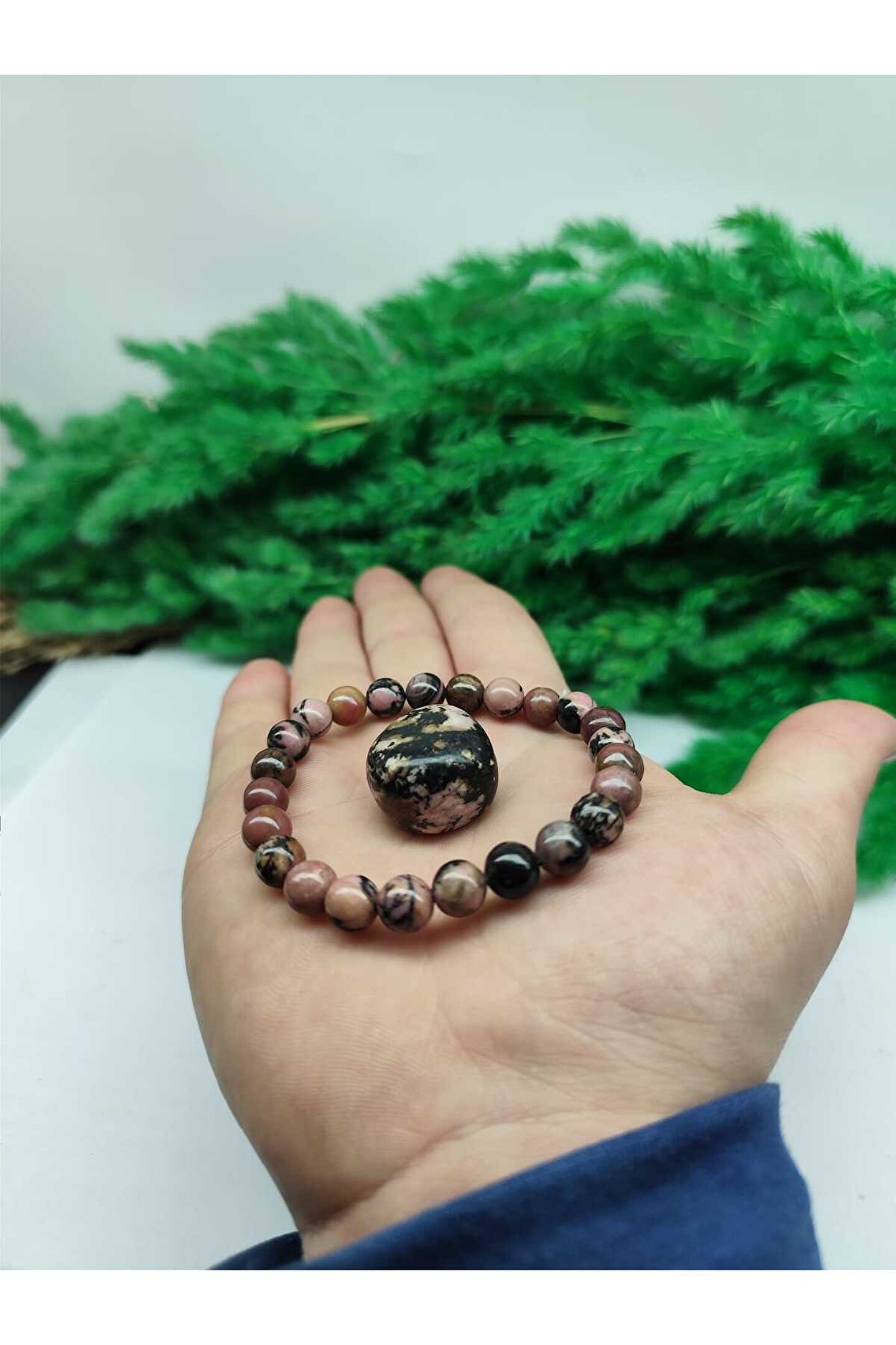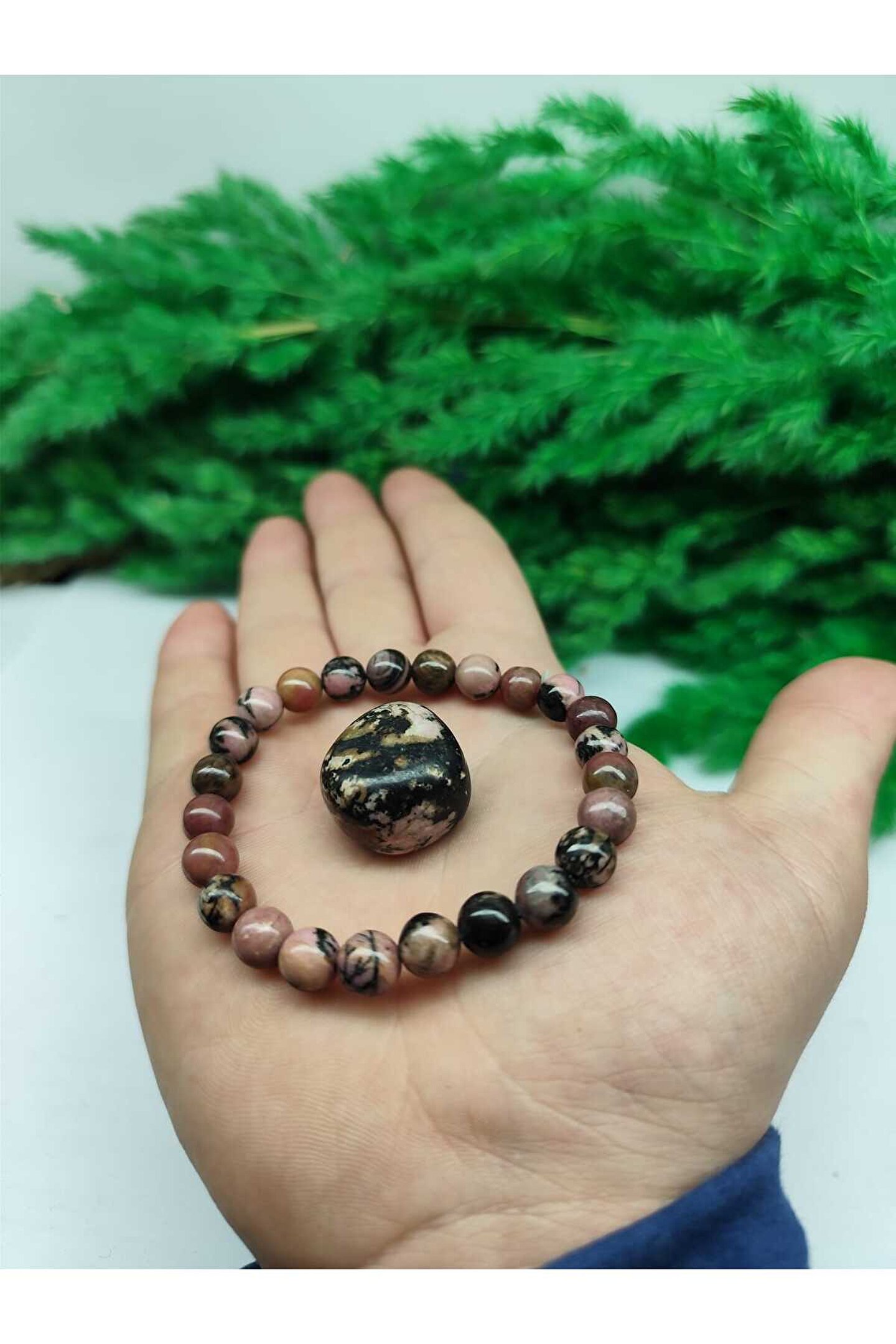 Doğal taş bileklik, şıklığınızı tamamlayacak zarif bir aksesuardır; Rodonit taşı kullanımı sayesinde benzersiz ve doğal bir görünüm sunar; Doğal taş materyali ile hem dayanıklılık hem de estetik bir dokunuş sağlar; Taş cinsi olarak seçilen Rodonit taşı, bilekliğinize eşsiz bir parlaklık katar;