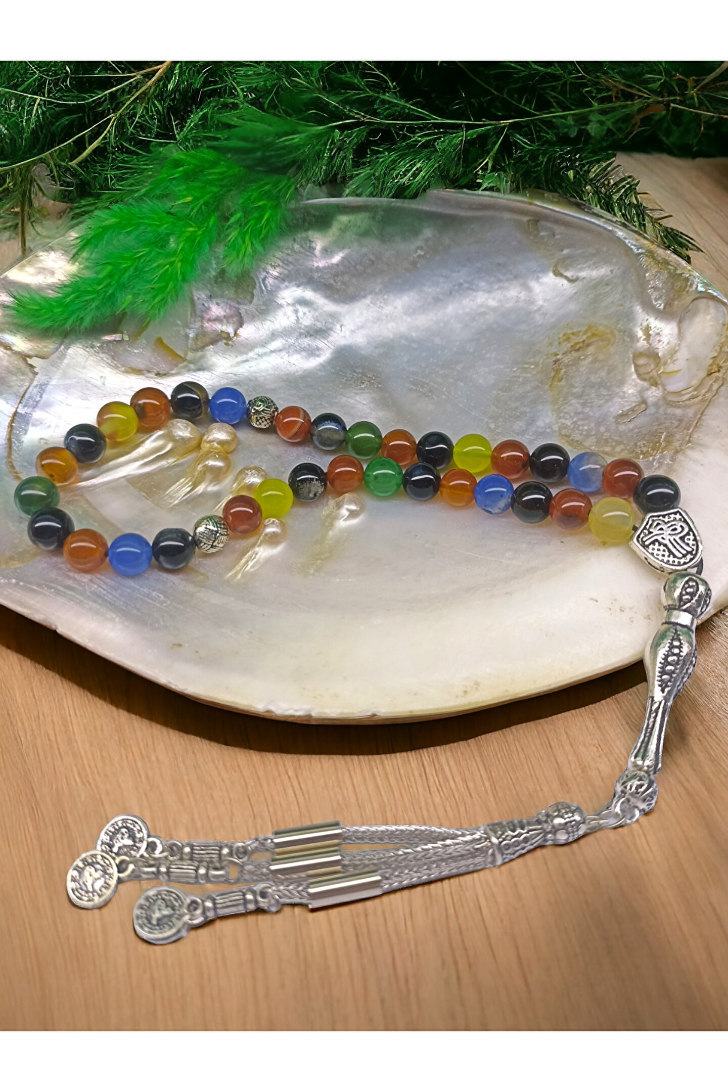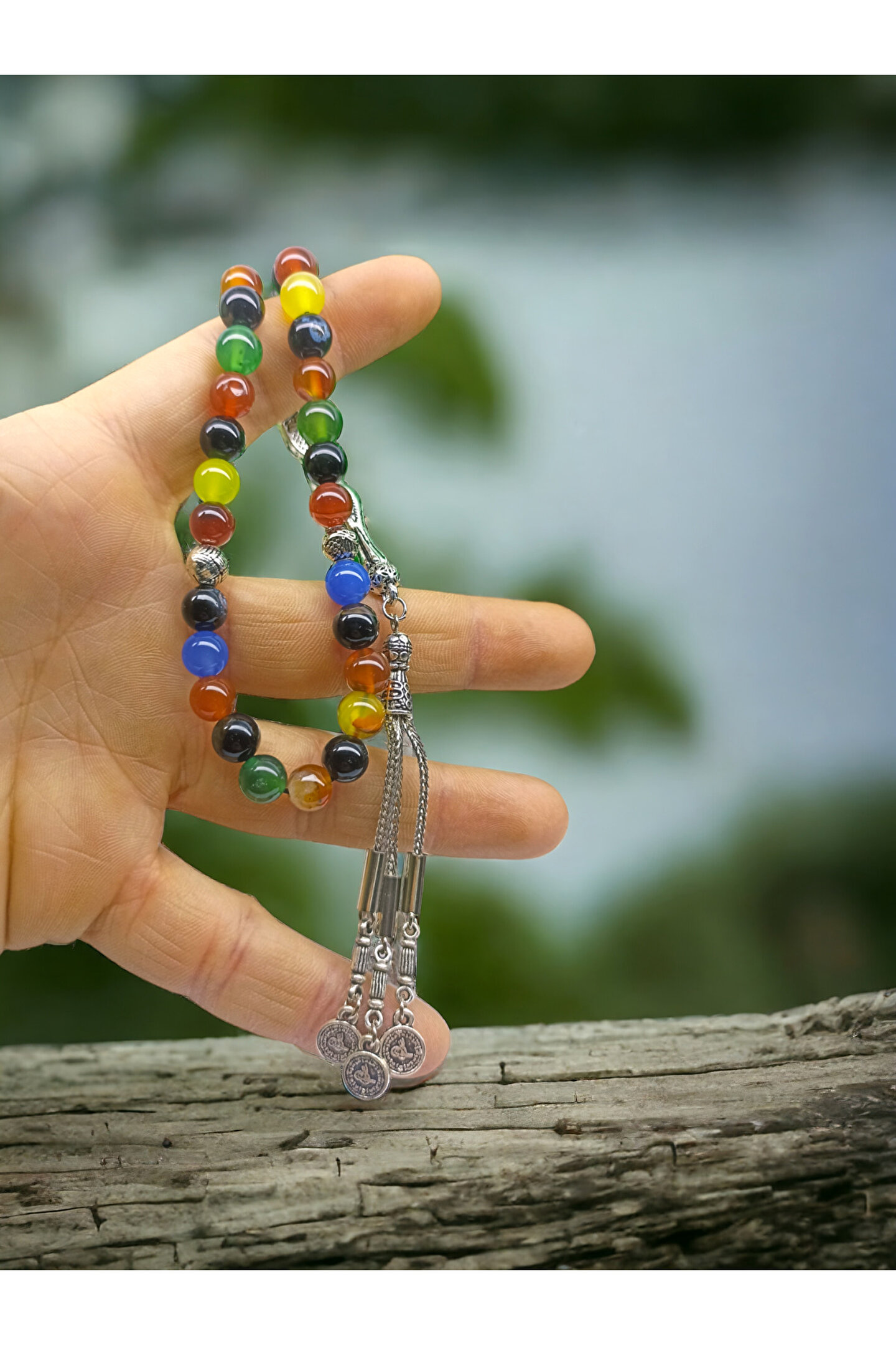 Doğal akik taşı kullanılarak üretilmiş, her bir tesbih tanesi özenle seçilmiş ve işlenmiştir; Sade ve şık tasarımıyla dikkat çeken düz deseni, her tür kıyafetle uyum sağlar; Gümüş kaplama detayları ile zenginleştirilmiş bu tesbih, hem göze hitap eder hem de uzun ömürlü kullanım sunar; Özel kutusunda sunulan sertifikalı ürün, kalitesini ve orijinalliğini garanti eder;