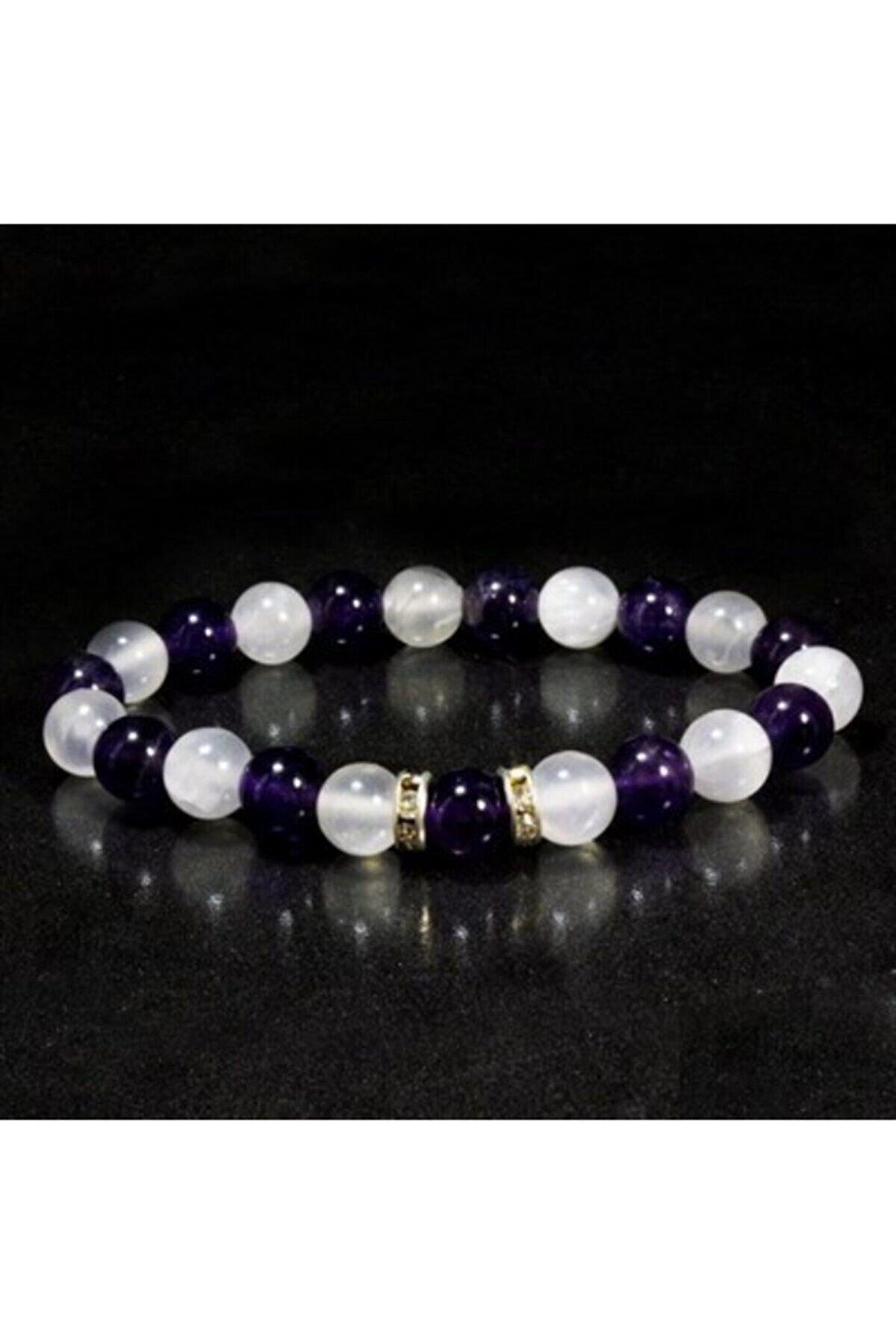 Dogal Taş Bileklik Zihin Duruluğu Kristal Kuvars ve Sitrin Birlikteliği 6mm AA Kaliteli Kristal