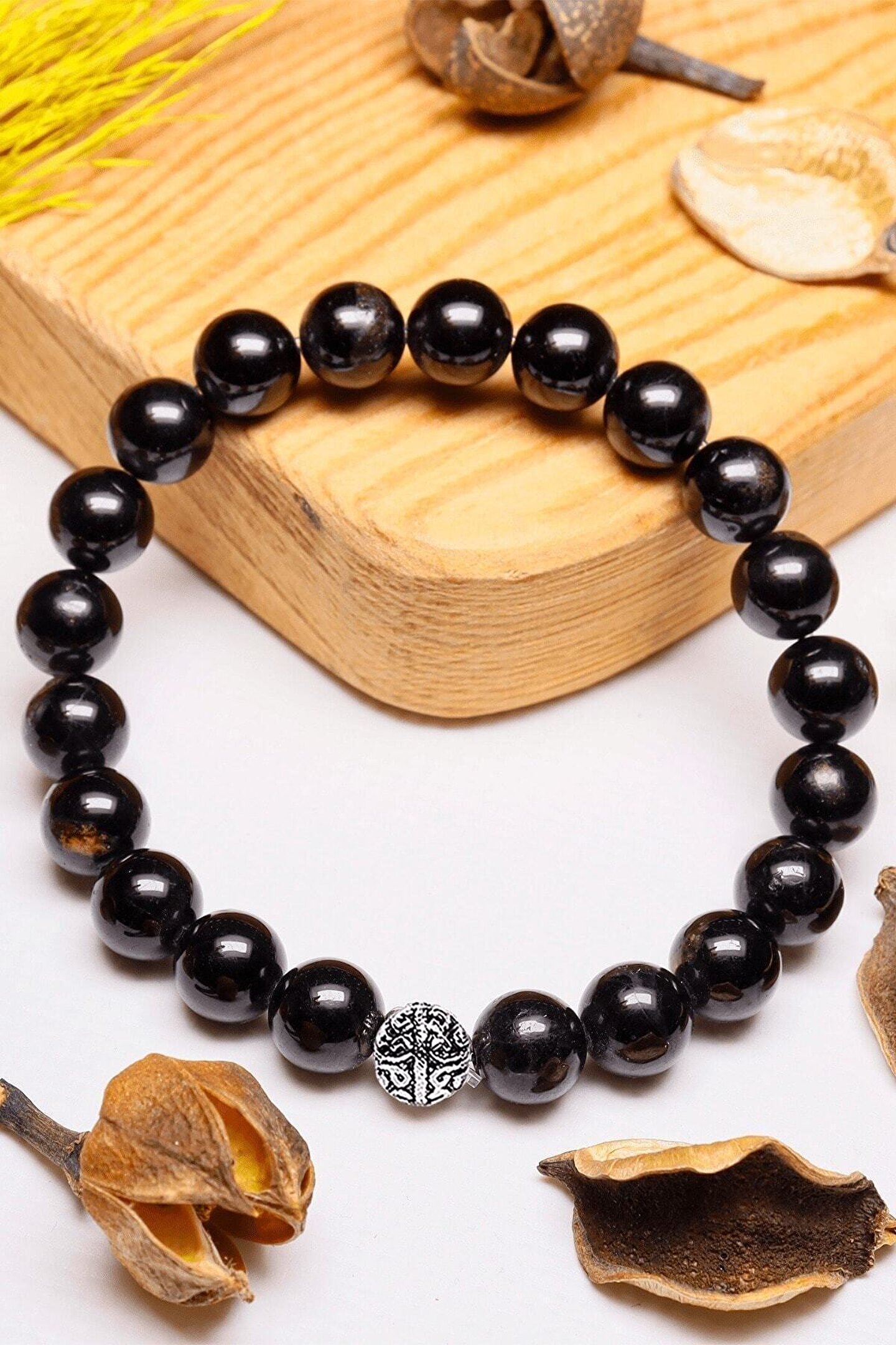 Sertifikalı Aaa+ Kalite Siyah Turmalin Taşı Bileklik - Gümüş Aparatlı