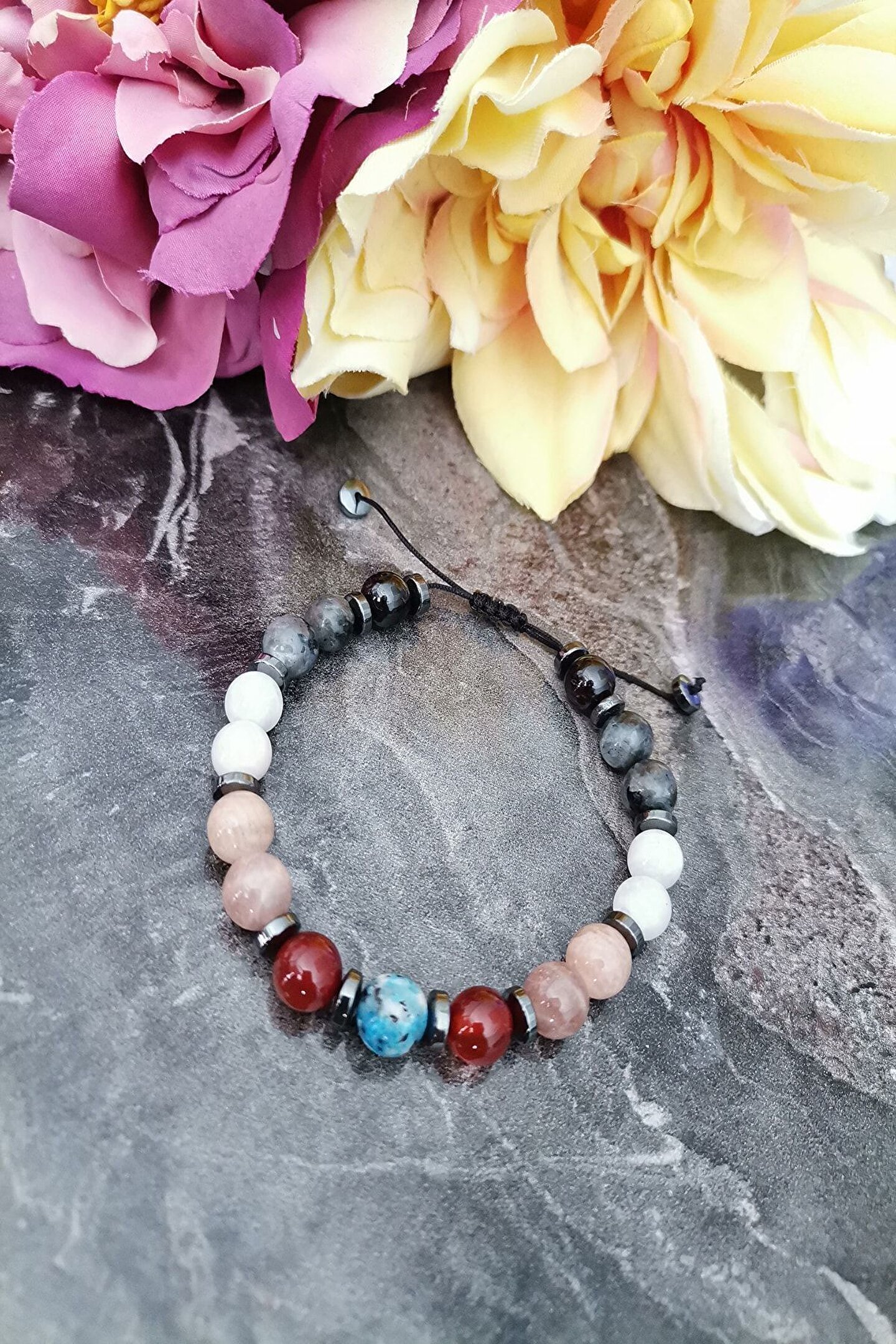 Sertifikalı Aslan Burcu Doğaltaş Bileklik: Dumortierit,akik,güneş Taşı,ay Taşı,lal,labradorit