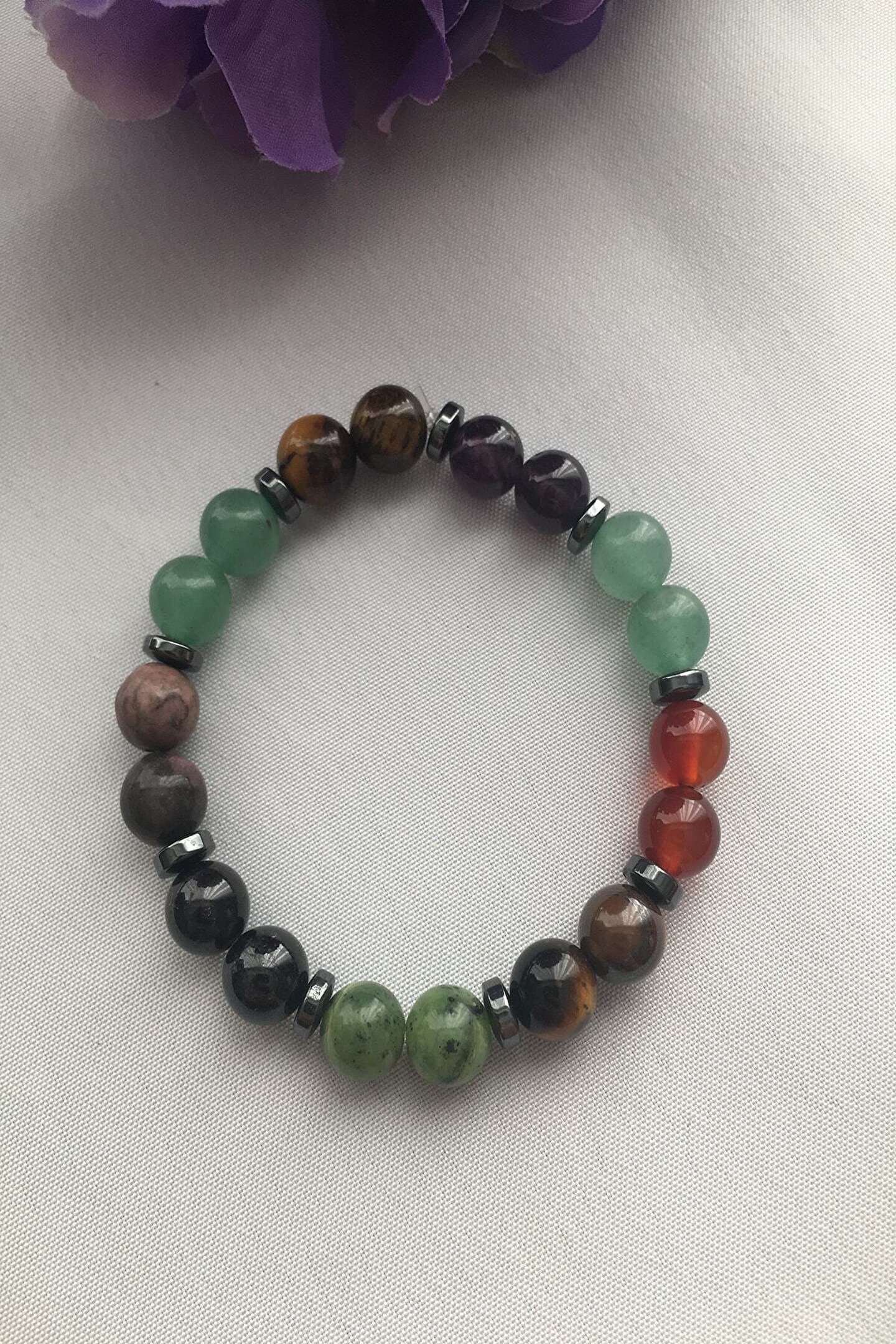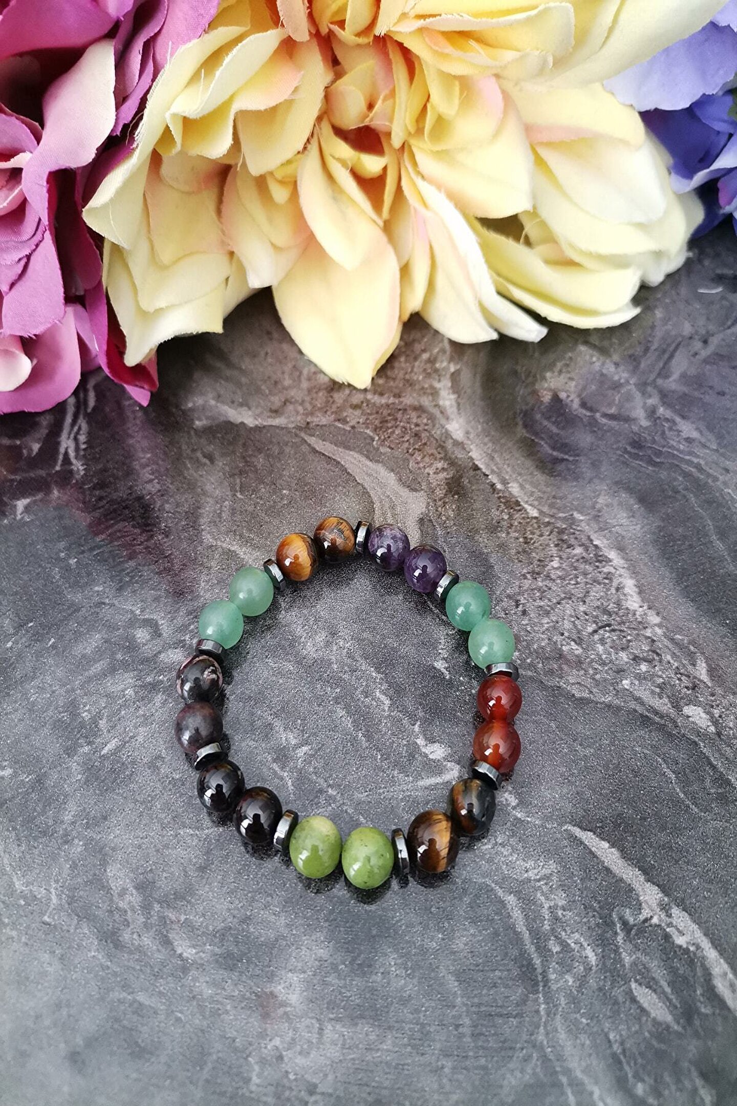 - Doğal taşların şıklığını ve gücünü bileğinizde hissedin: Yeşim, lal, kaplan gözü, akik, rodonit, ametist ve aventurin gibi sertifikalı doğaltaşlardan oluşan bu bileklik, her anınıza doğanın zarafetini katıyor; - Her bir bileklik, benzersiz bir enerji ve estetik sunar: Her bir bileklik, farklı bir doğaltaşın özelliklerini yansıtarak kişisel tarzınıza özel bir dokunuş sağlar; - Stresle başa çıkmanın doğal yolu: Doğal taşların bilinen faydaları sayesinde, bu bileklikler stres ve negatif enerjiyi azaltmaya yardımcı olurken, aynı zamanda şıklığınızdan ödün vermezsiniz; - Kaliteli malzeme seçimi: Sertifikalı doğaltaşlar kullanılarak üretilen bu bileklikler, uzun süreli kullanım için dayanıklılık ve estetik görünüm sunar; - Her bileklik bir hikaye anlatır: Her bir bileklik, doğanın renkleri ve desenleriyle kendi hikayesini anlatır; bu sayede her takıldığ;
