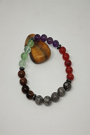 Doğal taş bileklik, İkizler burcu için özel olarak tasarlanmıştır ve her bir bileklikte ametist, akik, jasper, kaplan gözü, florit ve hematit gibi farklı doğaltaşlar kullanılmıştır; Bu bileklik, İkizler burcunun enerjik ve yaratıcı doğasını yansıtan şık bir aksesuar seçeneği sunar; Her bir bileklik, benzersiz ve özgün bir görünüm kazandıran doğal taşların doğal renk ve desenleriyle dikkat çeker; Sertifikalı doğaltaş bileklik, kalite ve güvenilirlik açısından öne çıkar ve İkizler burcunun tarzını tamamlar;