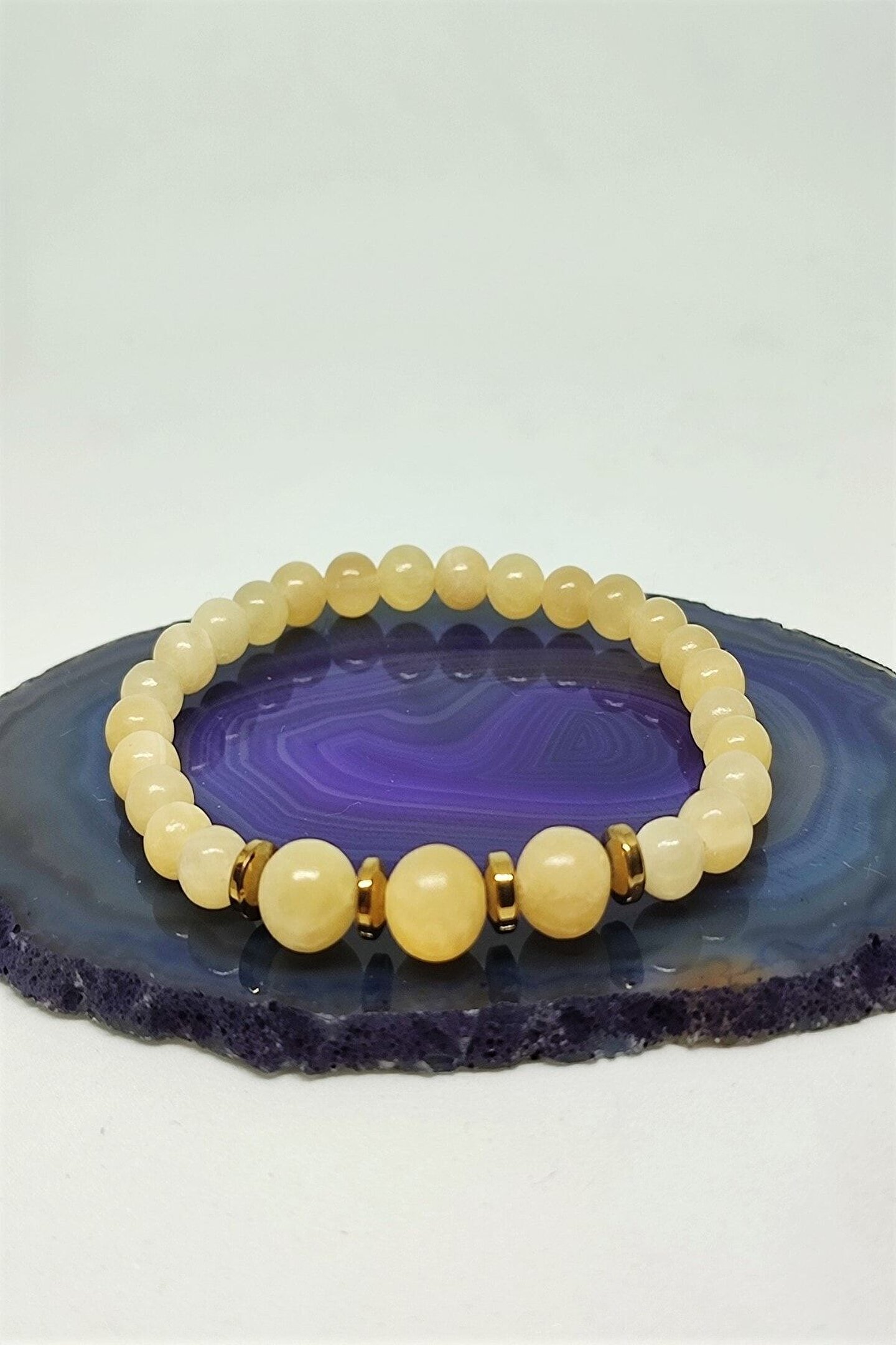 Doğal kalsit taşı kullanılarak üretilmiş, her bir bileklik benzersiz ve özgün bir tasarıma sahiptir; - Sertifikalı kalsit doğaltaş bileklik, hem şıklığı hem de doğallığı bir arada sunar; - El işçiliği ile hazırlanan bu bileklik, günlük kullanım için idealdir ve her kıyafetle uyum sağlar; - Sertifikalı doğaltaş bileklik, kalite ve güvenilirlik açısından da öne çıkarak uzun süreli kullanım vaat eder;