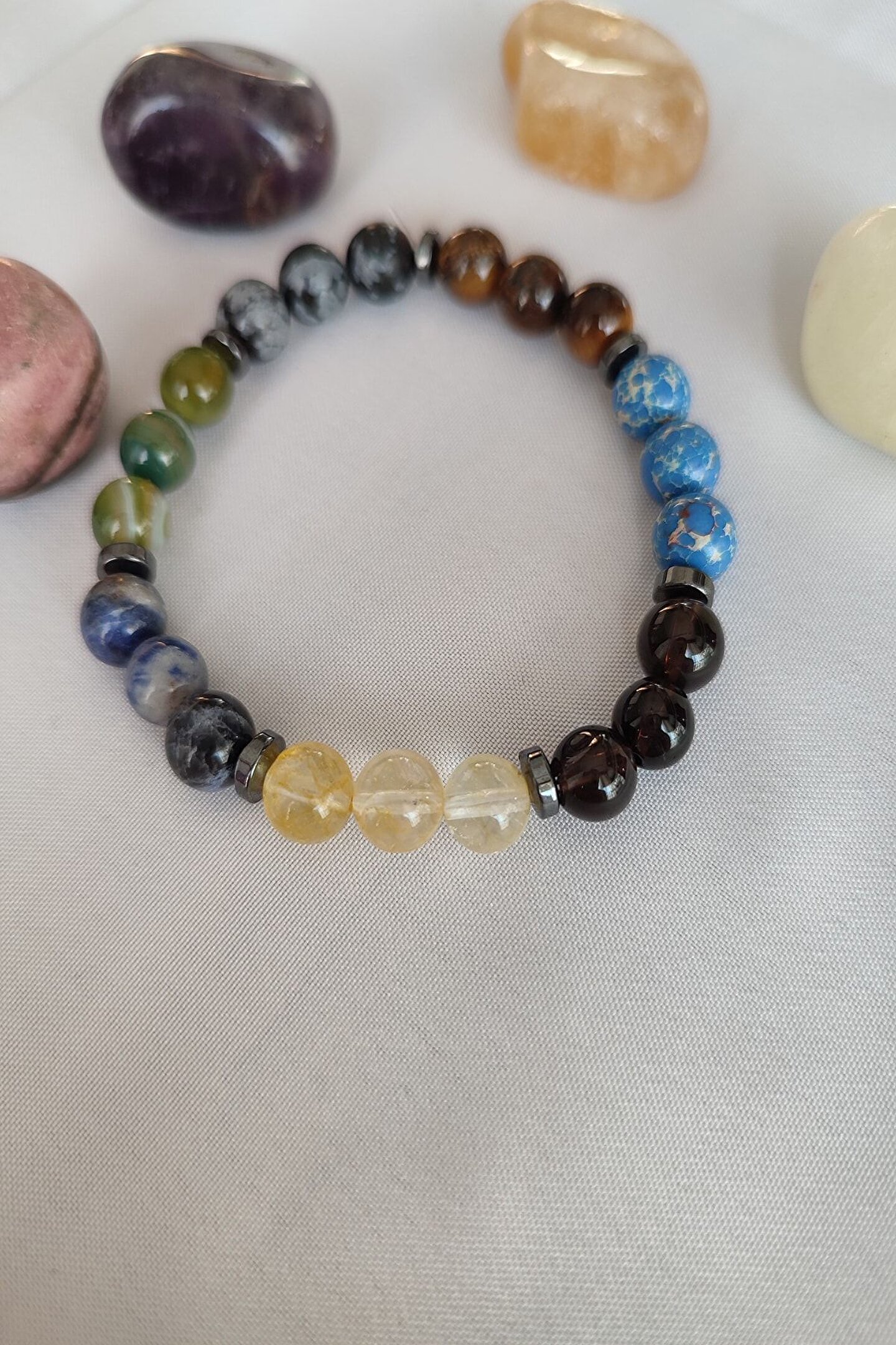 Doğal taş bileklik, şıklığınızı tamamlayacak zarif bir aksesuardır; Sertifikalı obsidyen, yeşil akik, sodalit, sitrin, dumanlı kuvars, varasit ve kaplan gözü gibi farklı türlerdeki doğal taşlarla üretilmiştir; Her bir bileklik, benzersiz ve otantik bir görünüm sunar, günlük kullanım için idealdir; Doğal taşların enerjik özellikleri sayesinde, bilekliğinizle pozitif bir enerji yayabilirsiniz;