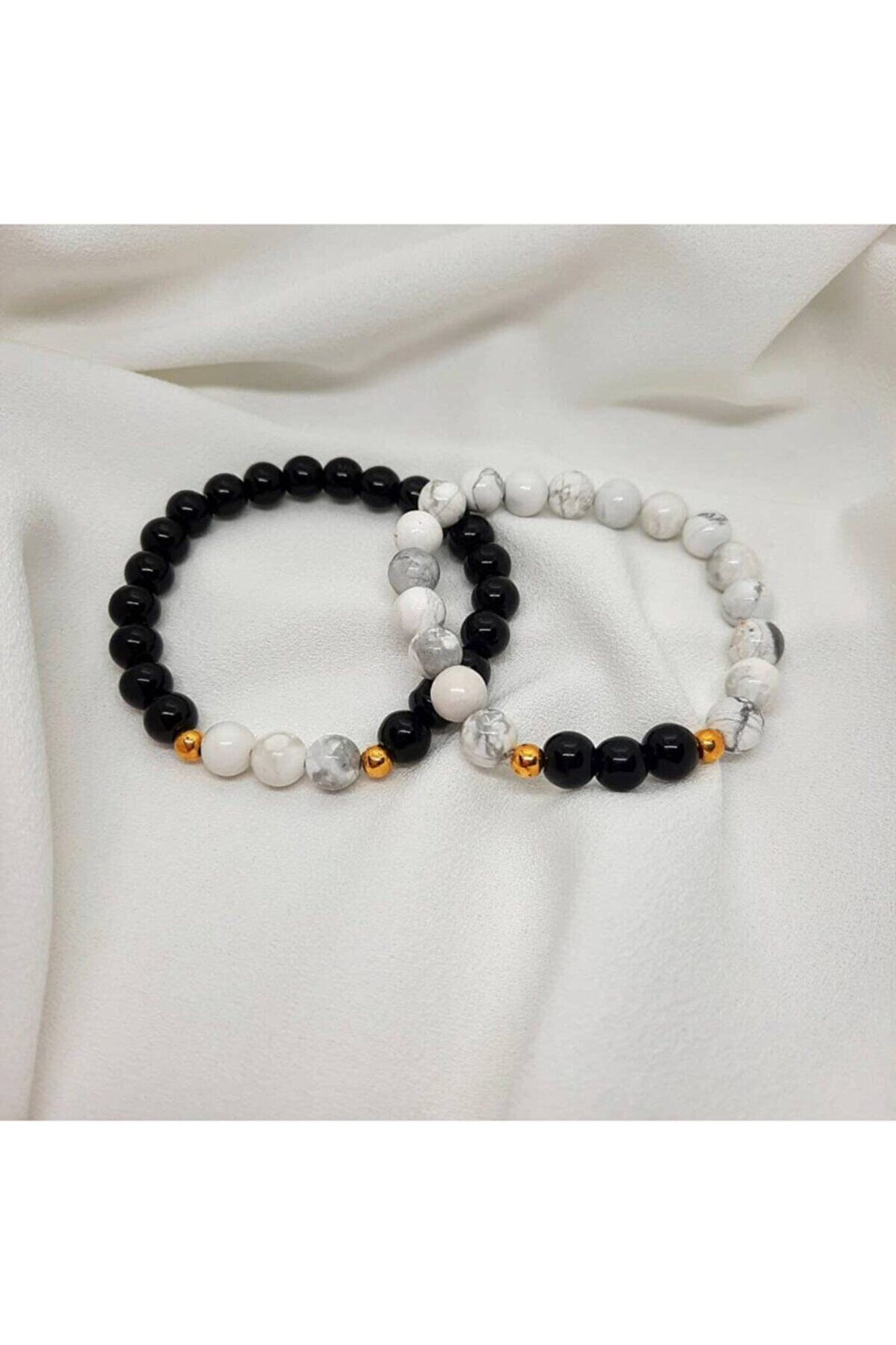 Sevgili Eş Çift Kadın Erkek Doğal Taş Kombin Bileklik Obsidyen Havlit