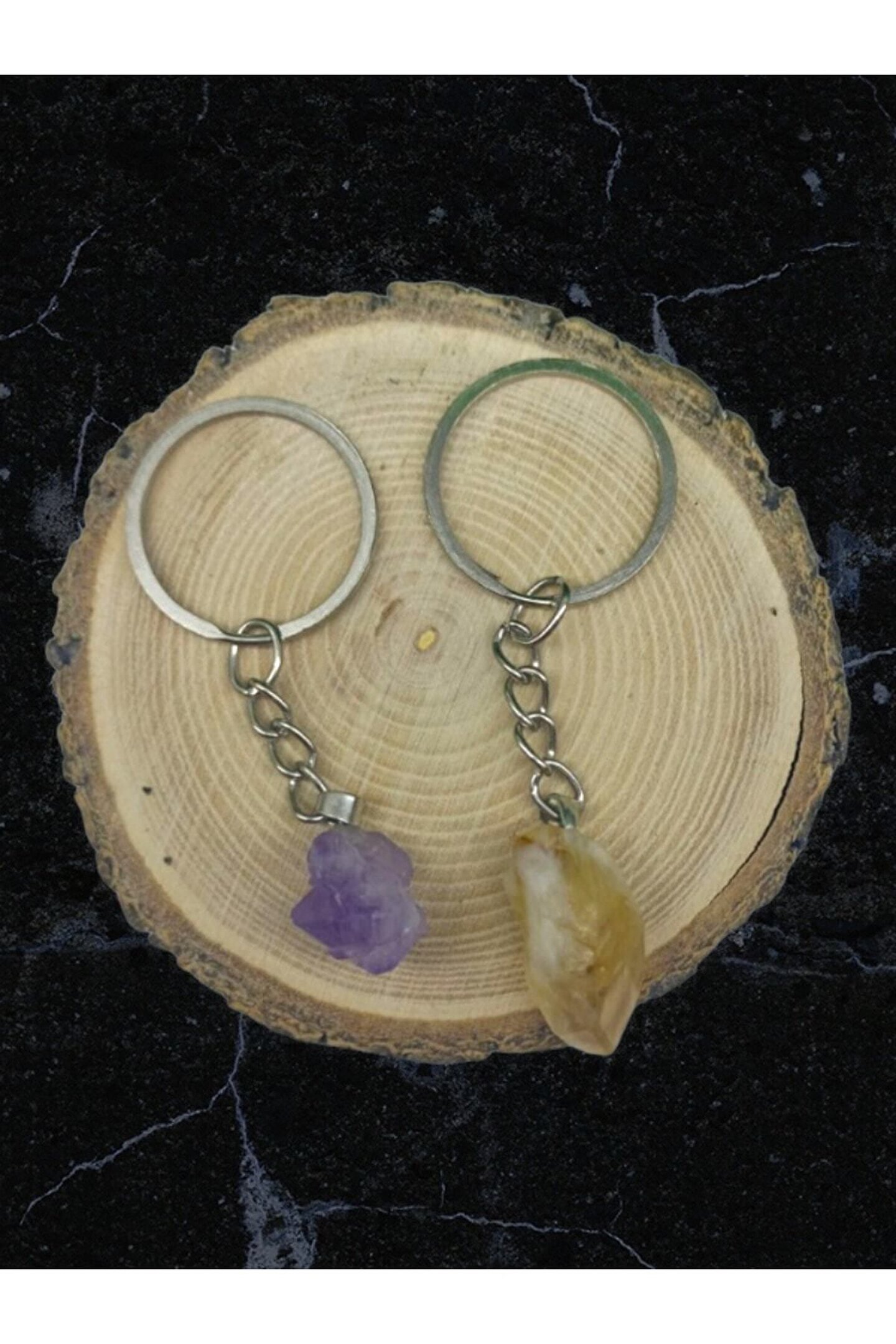 SİTRİN-AMETİST İKİLİ DOĞAL TAŞ ANAHTARLIK (SERTİFİKALI)