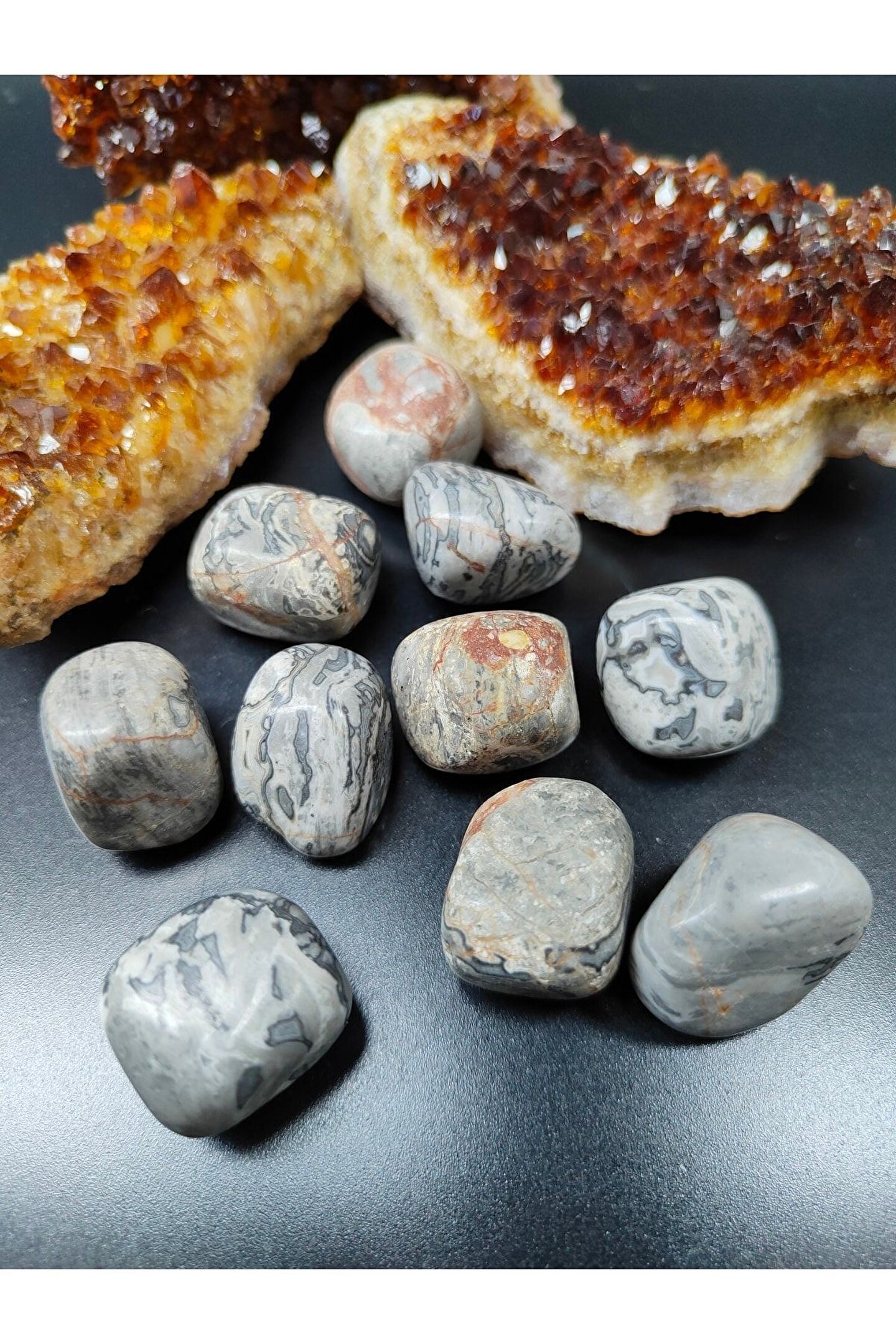Doğal Jasper taşı kullanılarak üretilmiş, her biri eşsiz ve otantik bir dokunuş sunar; Gri tonlarındaki zarif tasarımı ile mekanınıza modern ve şık bir hava katar; Doğal taşların sıcaklığını ve estetiğini evinizin her köşesine taşıyarak, dekoratif objelerinizle uyum sağlar; Jasper taşı, dayanıklılığı ve uzun ömürlü kullanımı ile dikkat çeker; böylece yıllar boyu keyifle kullanabilirsiniz;