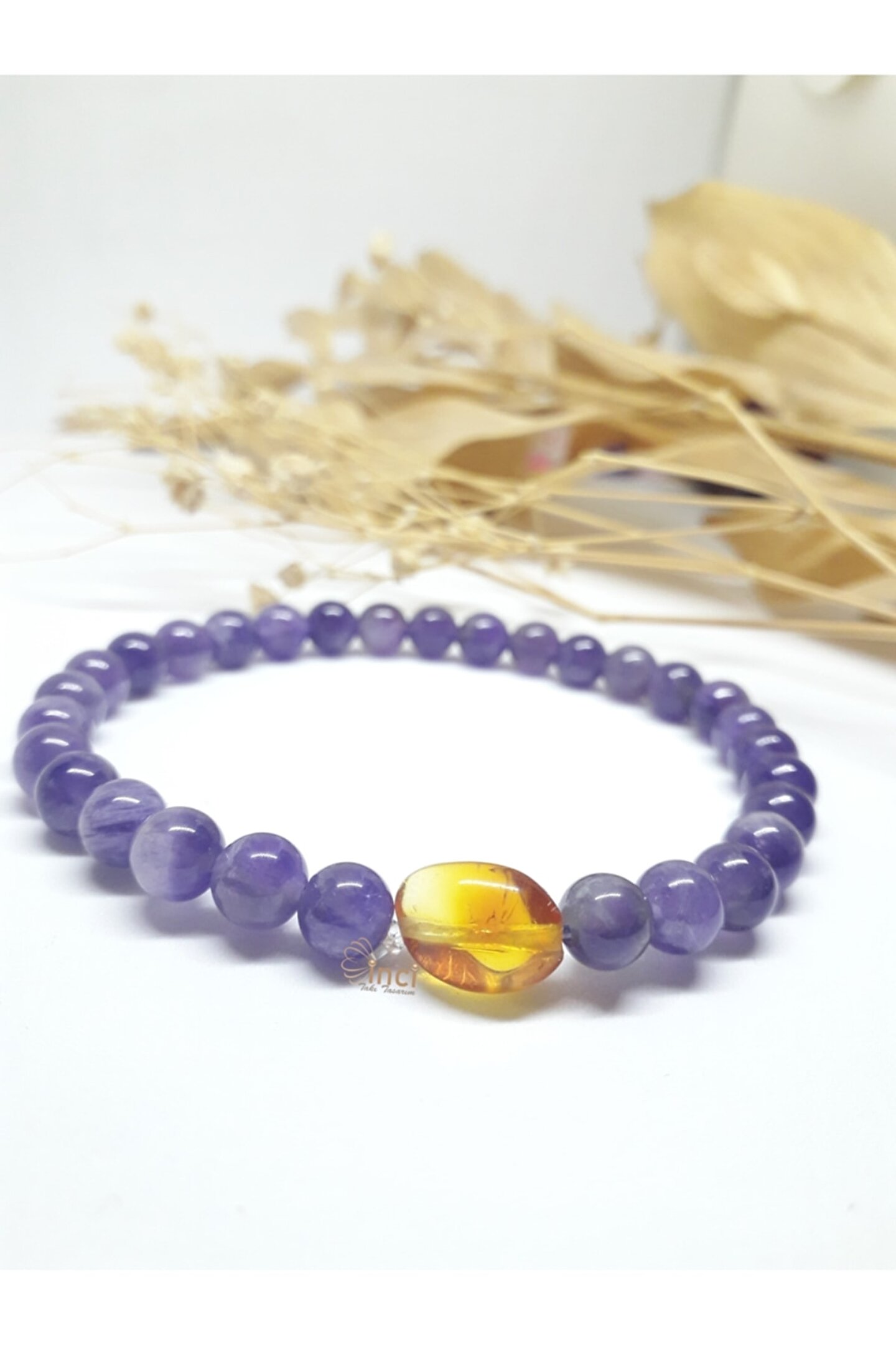 Doğal taş kullanımı sayesinde her bileklik benzersiz ve otantik bir görünüm sunar; Ametist taşı, şık ve zarif tasarımıyla dikkat çekerken, kehribar taneleriyle zenginleştirilmiş yapısı ile göz alıcı bir parlaklık kazandırır; 6 mm boyutundaki bu bileklik, hem günlük kullanım hem de özel günlerde şıklığınızı tamamlar; Doğal taş materyaliyle hem dayanıklılık hem de estetik bir dokunuş sağlar;
