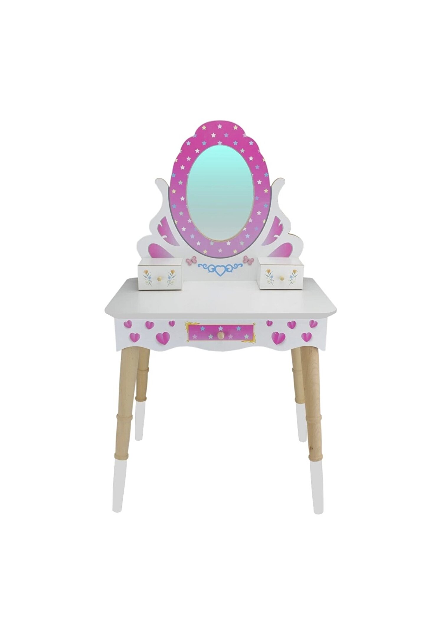 Ahşap Güzellik Masası - Makyaj Seti - Ahşap Güzellik Seti - Makyaj Masası - Kuaför Oyuncak Seti