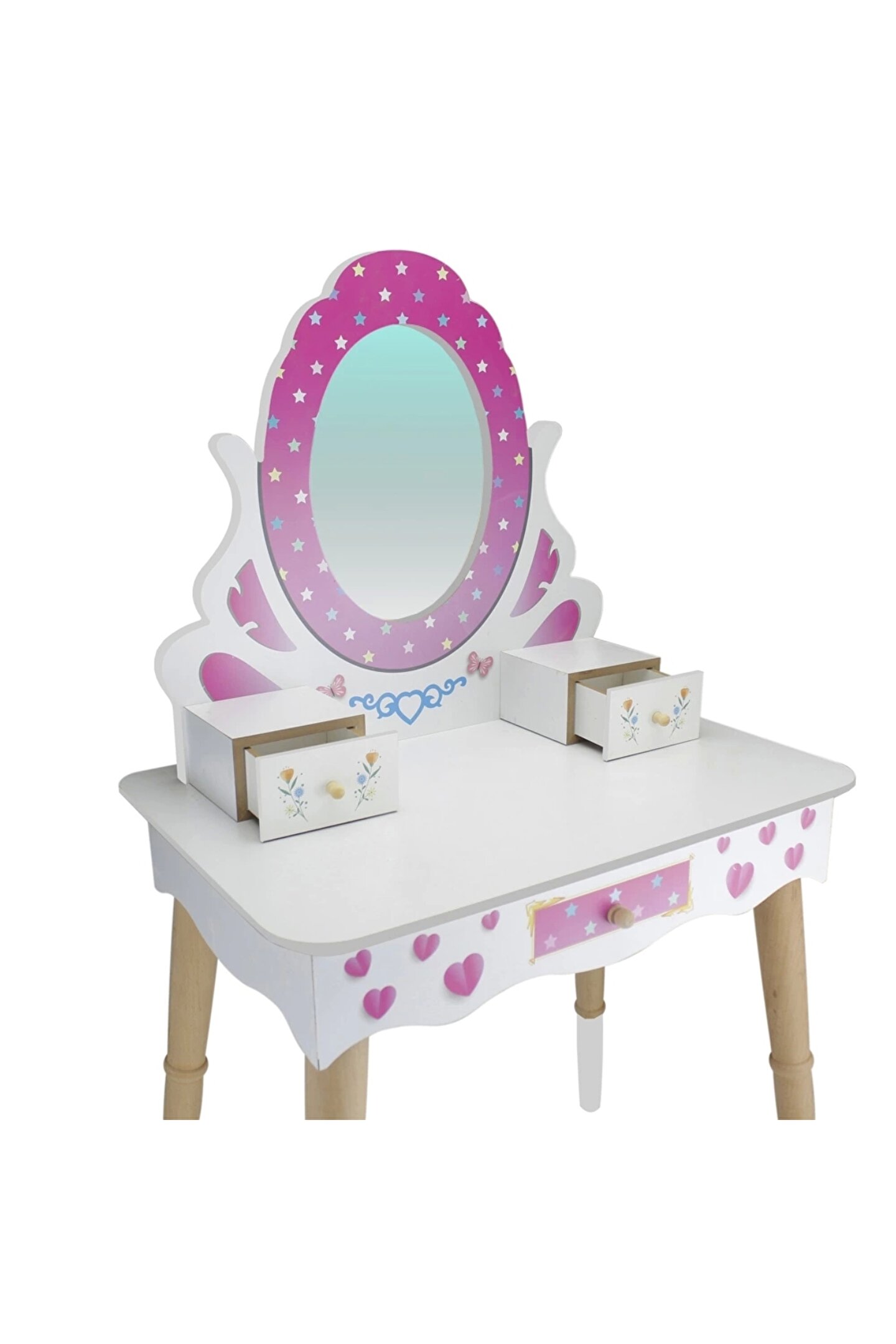 Doğan Oyuncak Dünyası Ahşap Oturaklı Güzellik Masası - Makyaj Seti - Ahşap Güzellik Seti - Makyaj Masası