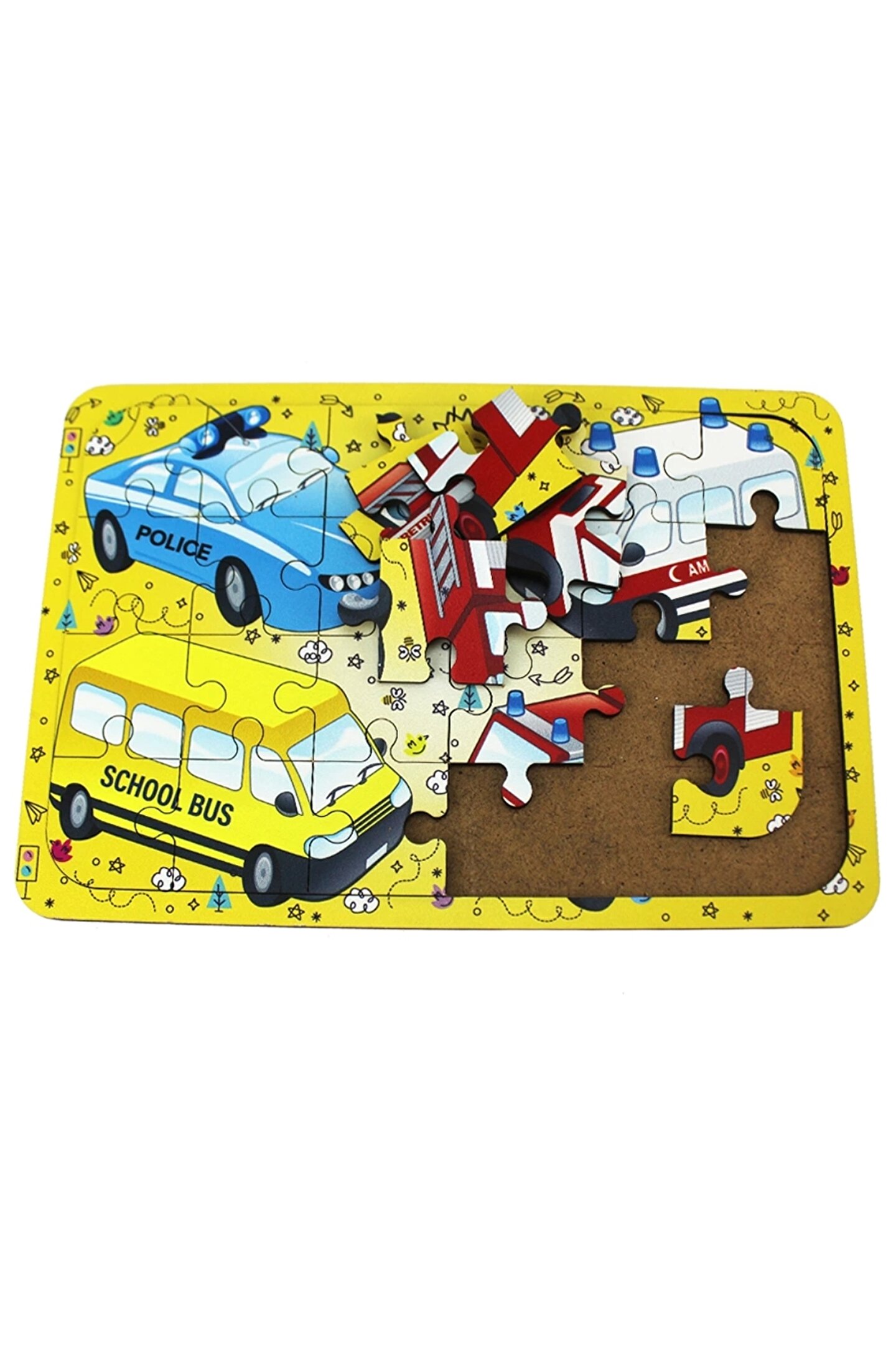 Doğan Oyuncak Dünyası Ahşap Taşıtlar Puzzle - Bebekleri İçin Puzzle - Ahşap Yapboz Oyuncak - Oyuncak Yap-boz - 24 Parça Pu