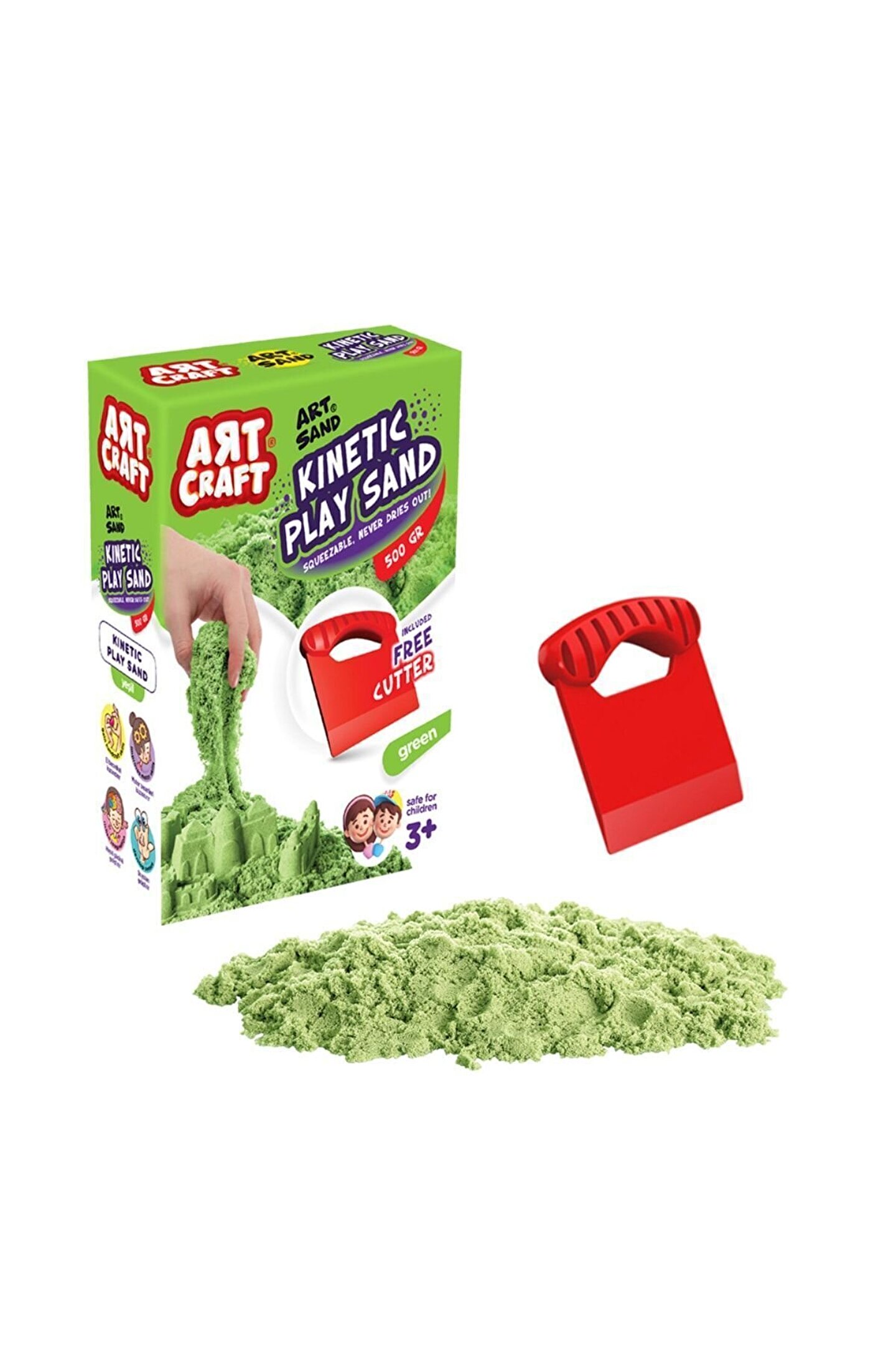 Aksesuarlı Yeşil Kinetik Oyun Kumu (500 Gr.) - Art Craft Kinetik Kum Seti - Art Sand Kumu