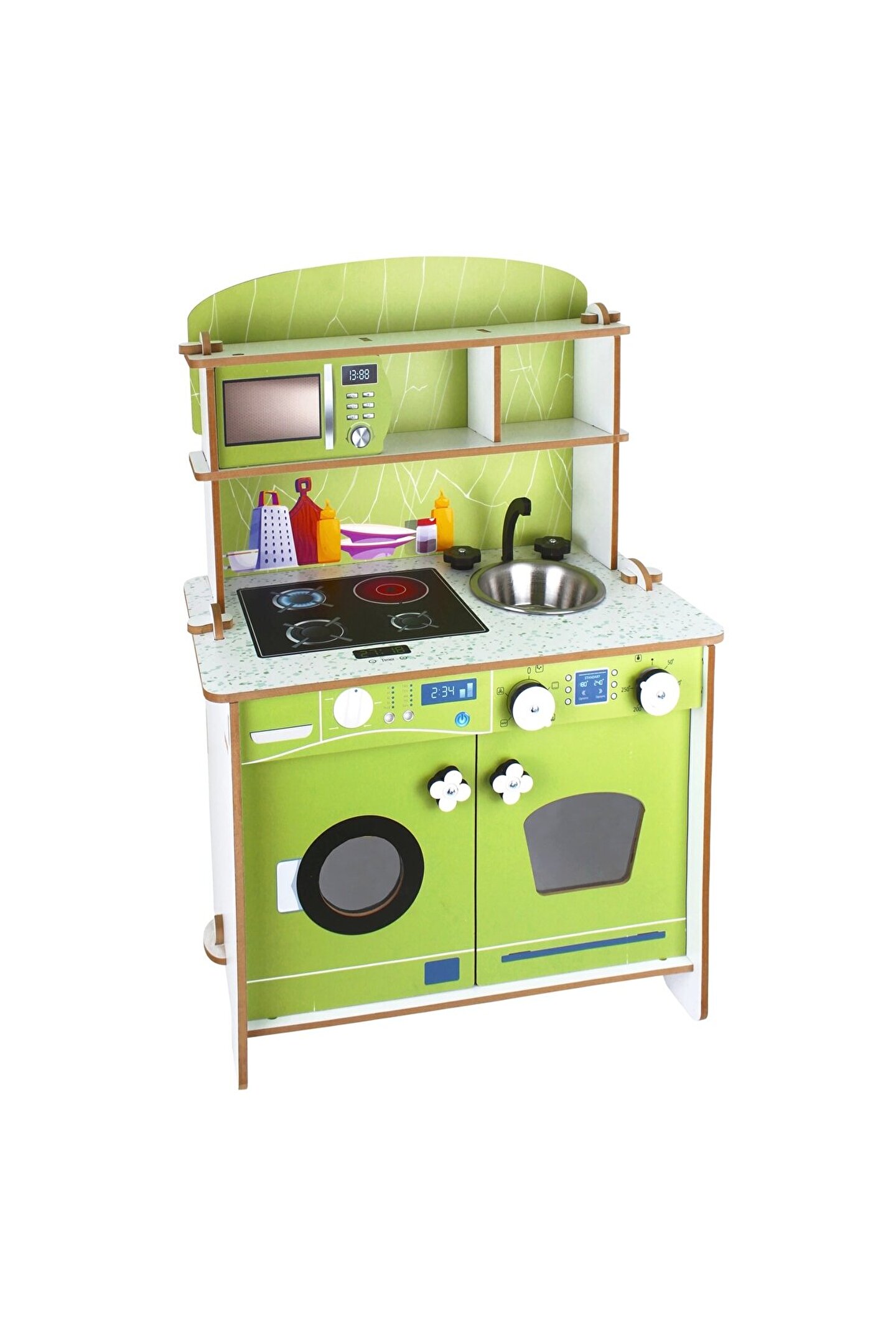 Delüx Hamarat Ahşap Mutfak - Ahşap Çocuk Mutfağı - Mutfak Seti - Kapaklı Mutfak