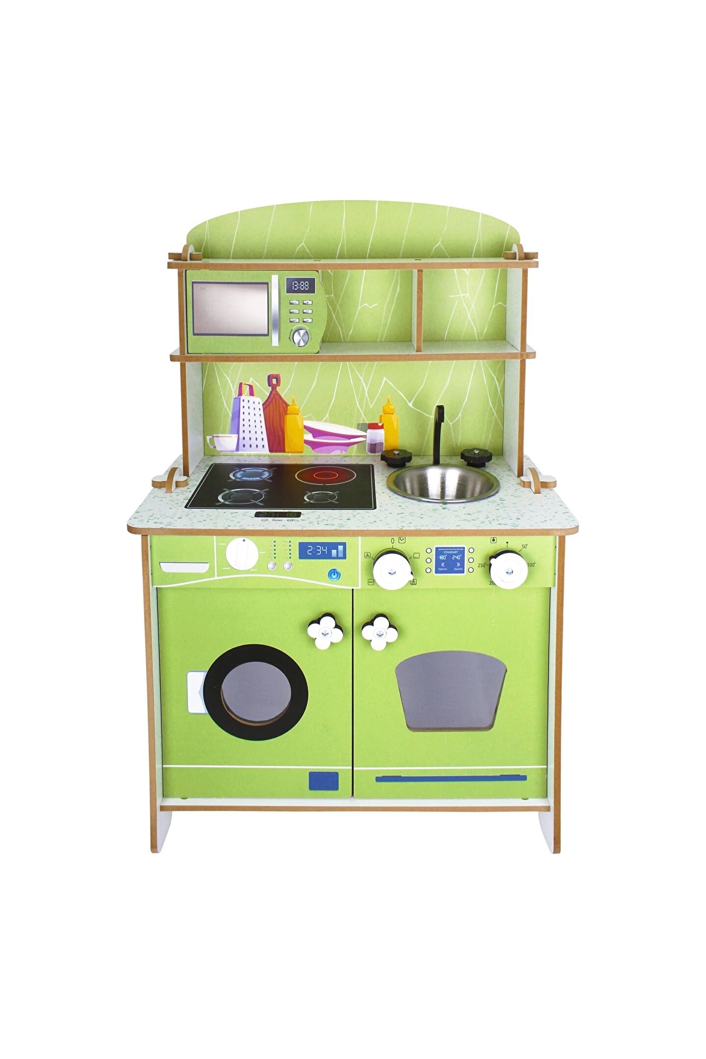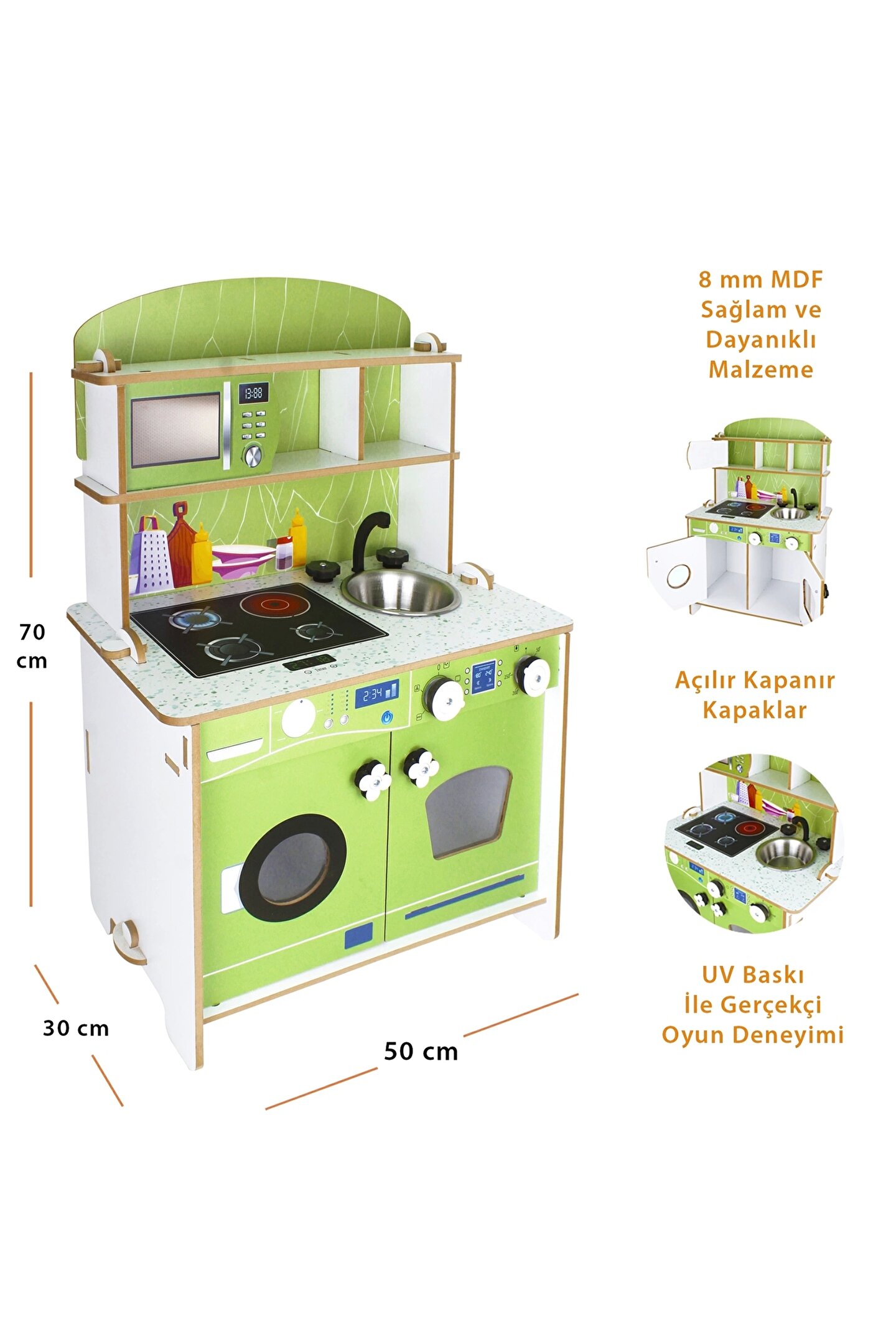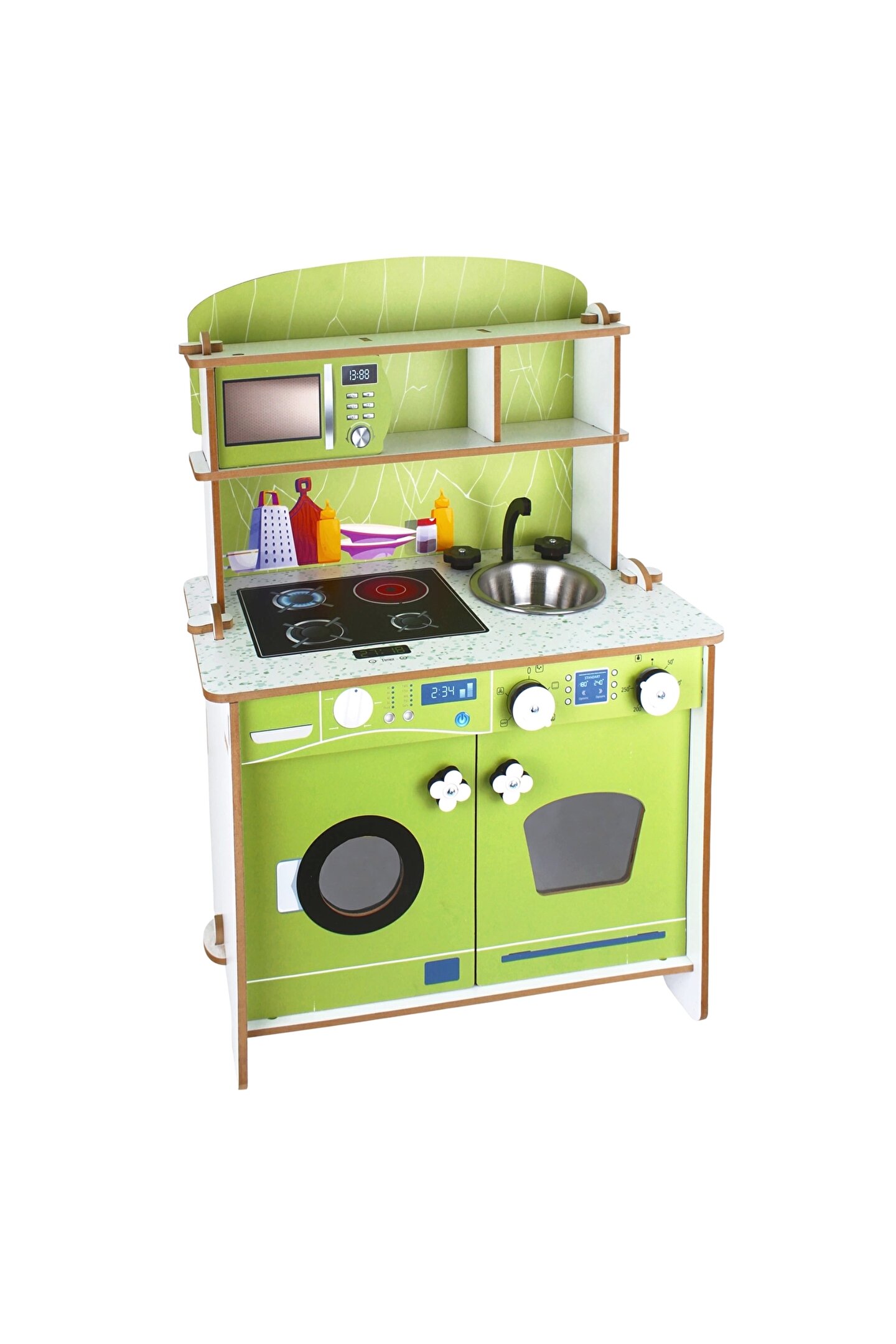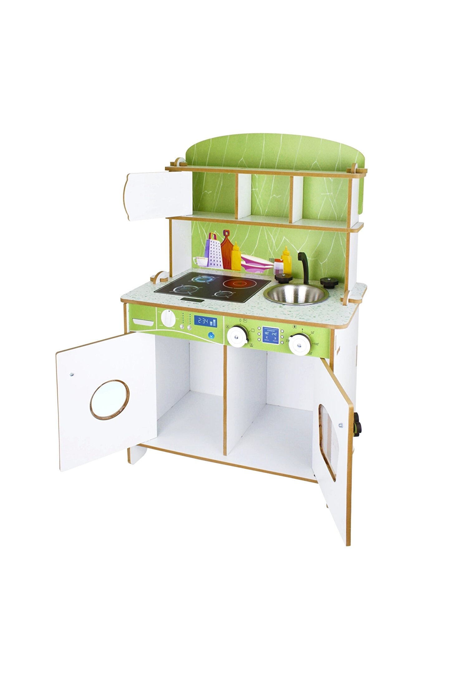 Doğan Oyuncak Dünyası Delüx Hamarat Ahşap Mutfak - Ahşap Çocuk Mutfağı - Mutfak Seti - Kapaklı Mutfak