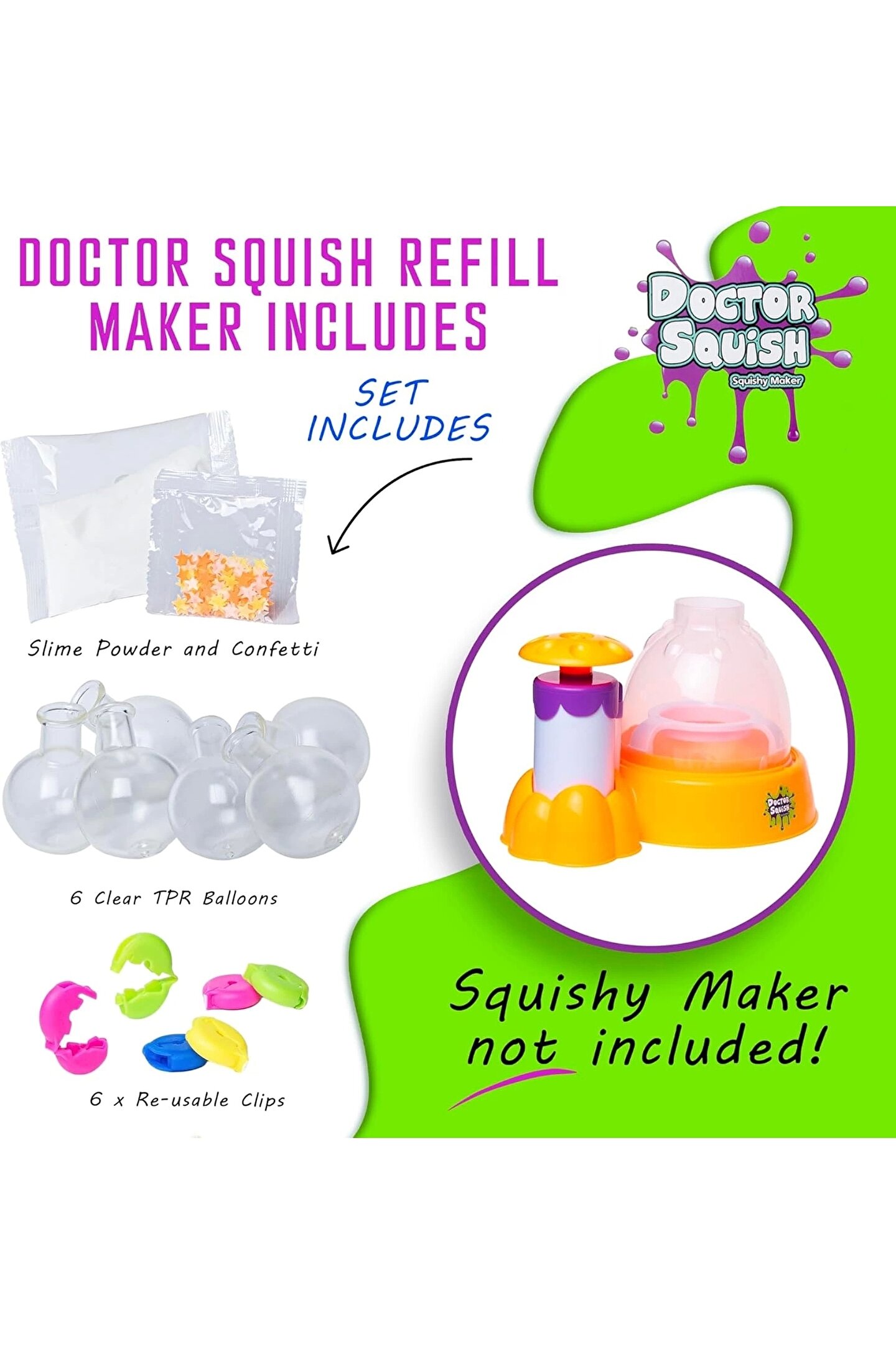 Doctor Squish Pack Refill Neon, Yedek Paket Parlak Simli Sukuşi Yapım Seti - Doktor Sukuşi - Sukuşi