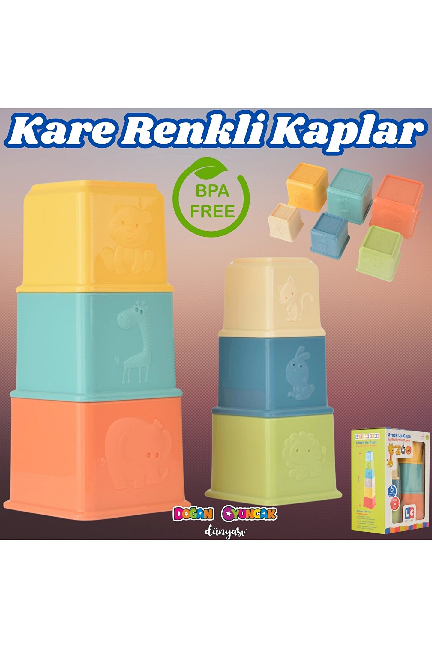 Eğitici Kare Renkli Kaplar - Üst Üste Dizme Oyunu - Kırılmaz Oyuncak - Kırılmaz Bebek Oyuncak - Kutu