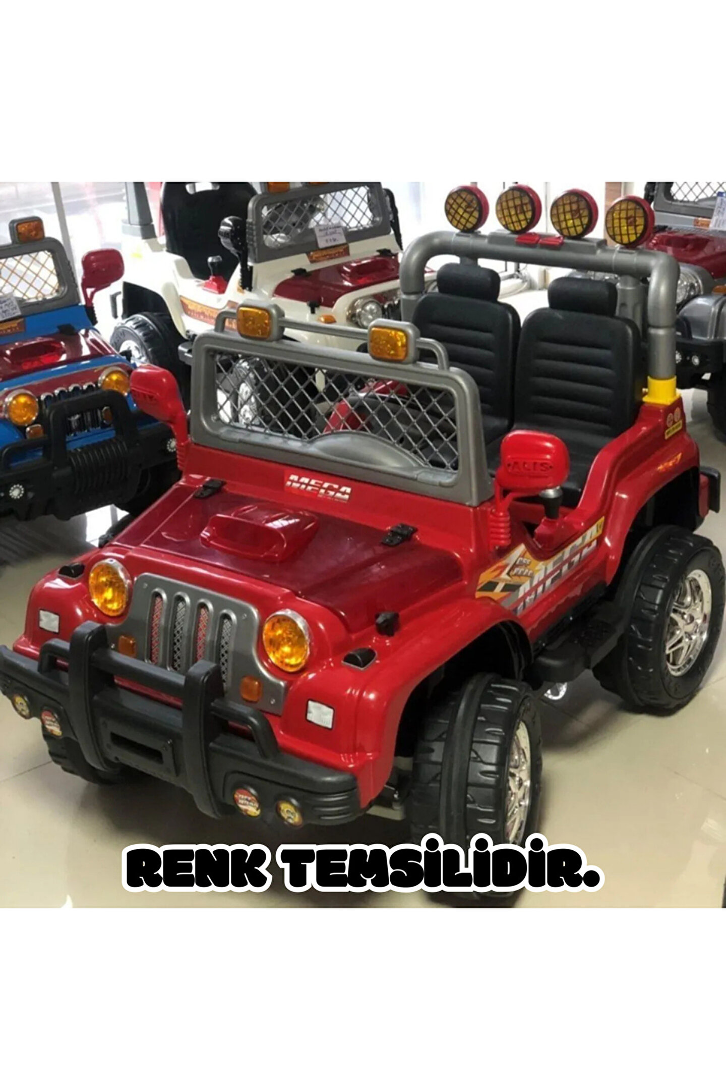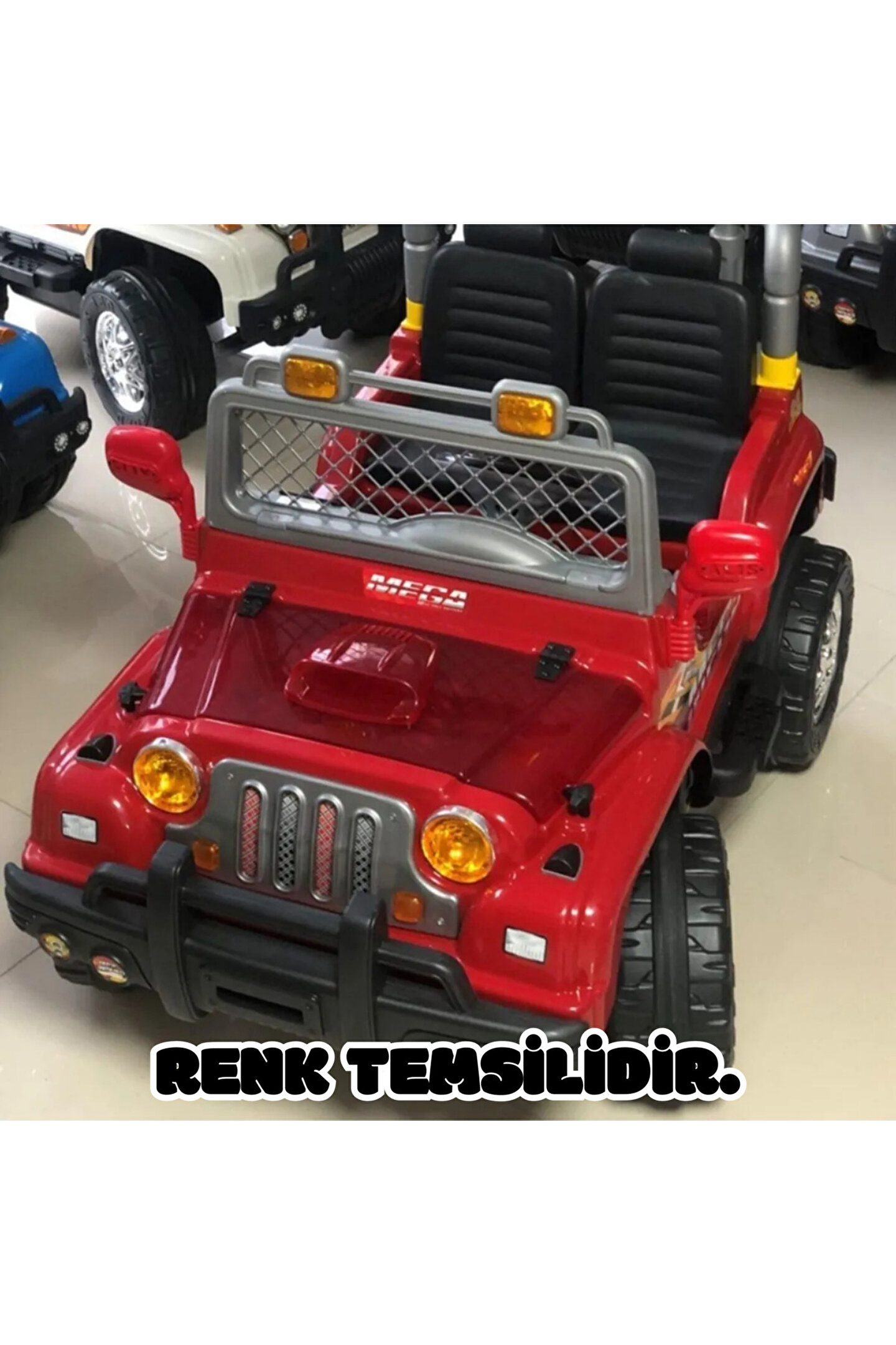 Kumandalı 2 Kişilik Mega Akülü Araba Kırmızı - Akülü JEEP Mega Off Road Turbo Jeep - 12 Volt Akülü Araba