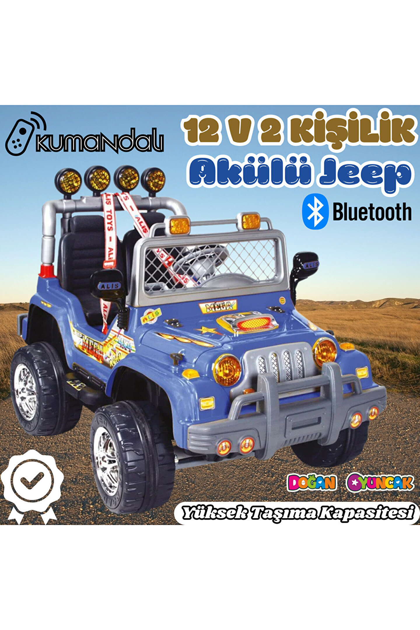 Kumandalı Çift Kişilik Mega Akülü Araba Mavi - 12 Volt İki Kişilik Akülü Araba Akülü JEEP - Mega Off