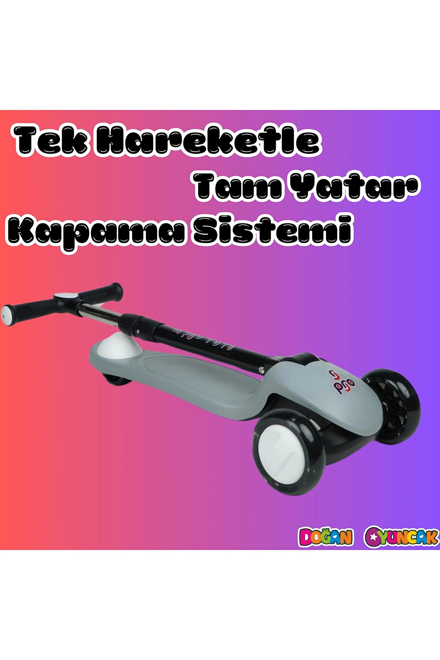Doğan Oyuncak Dünyası Lupa Katlanabilir Işıklı 3 Tekerlekli Gri Scooter - Işıklı Scooter - Slikon Teker Scooter - Çocuk Sc