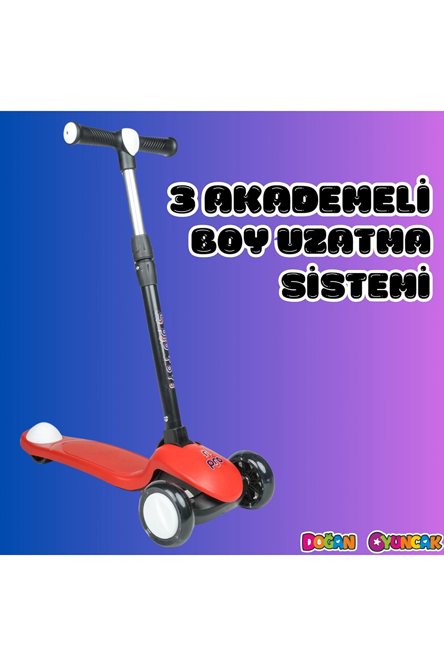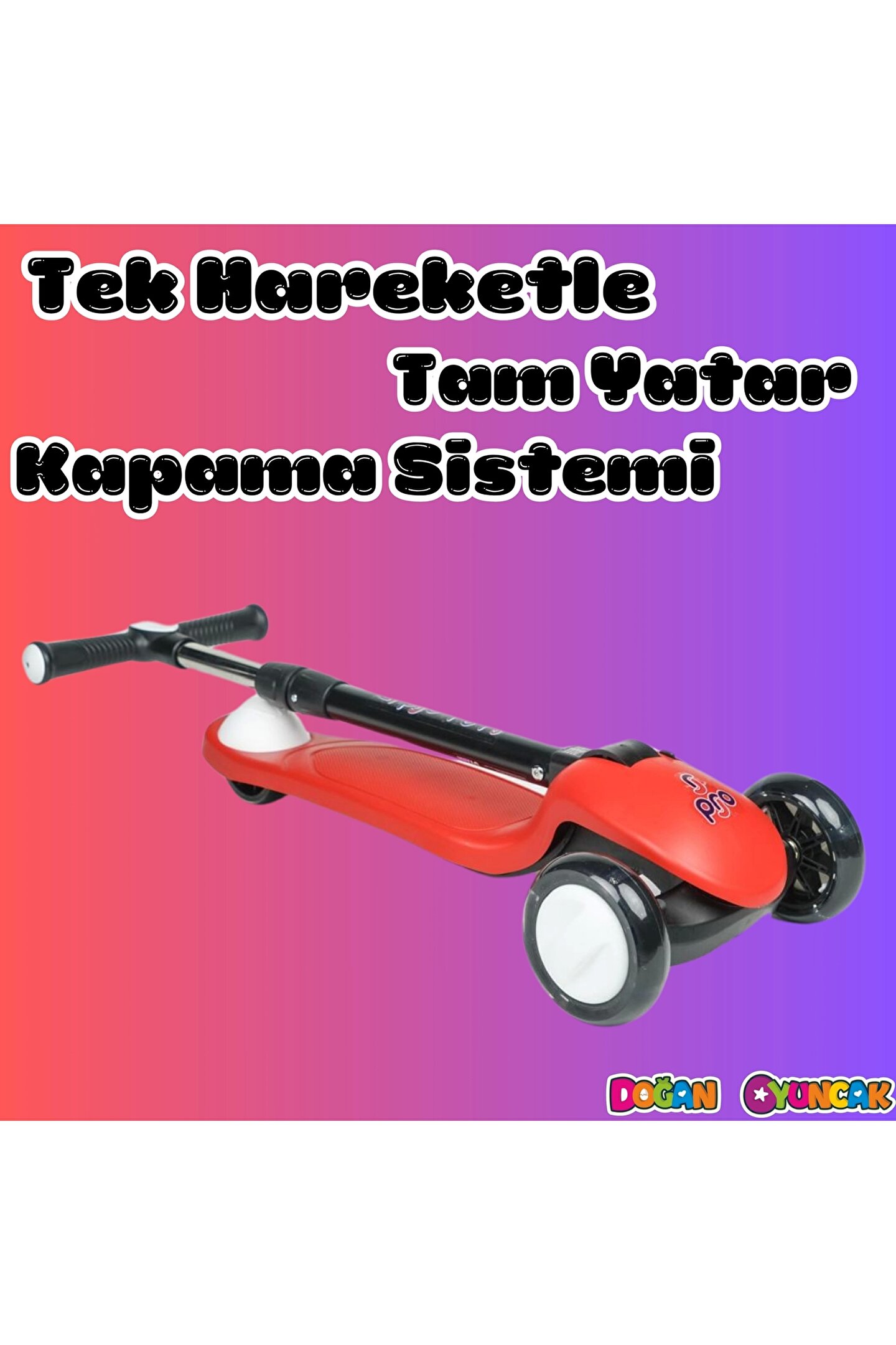 Doğan Oyuncak Dünyası Lupa Katlanabilir Işıklı 3 Tekerlekli Kırmızı Scooter - Işıklı Scooter - Slikon Teker Scooter - Çocu