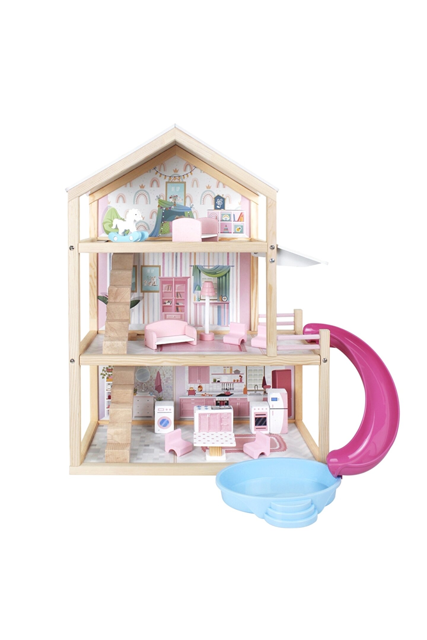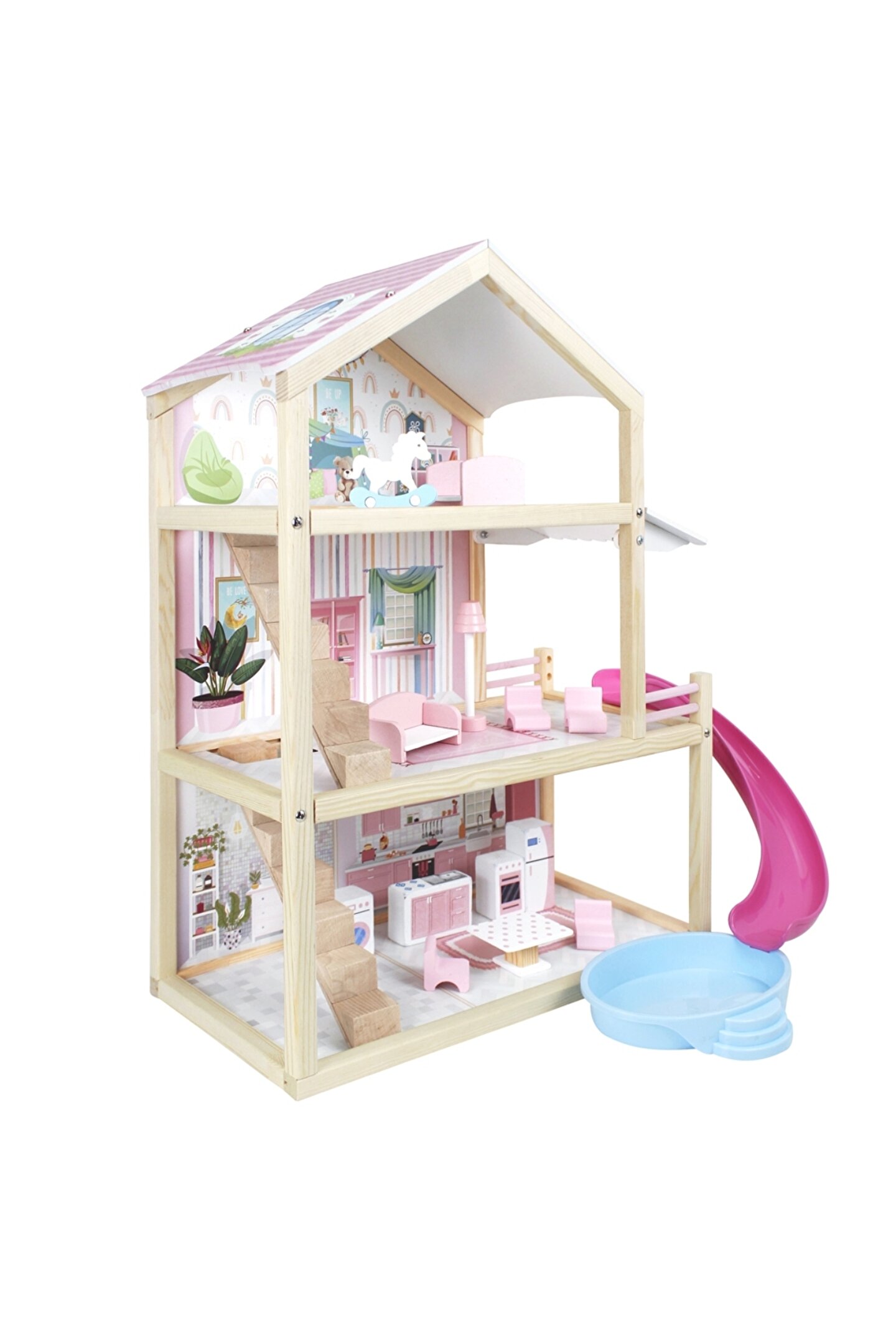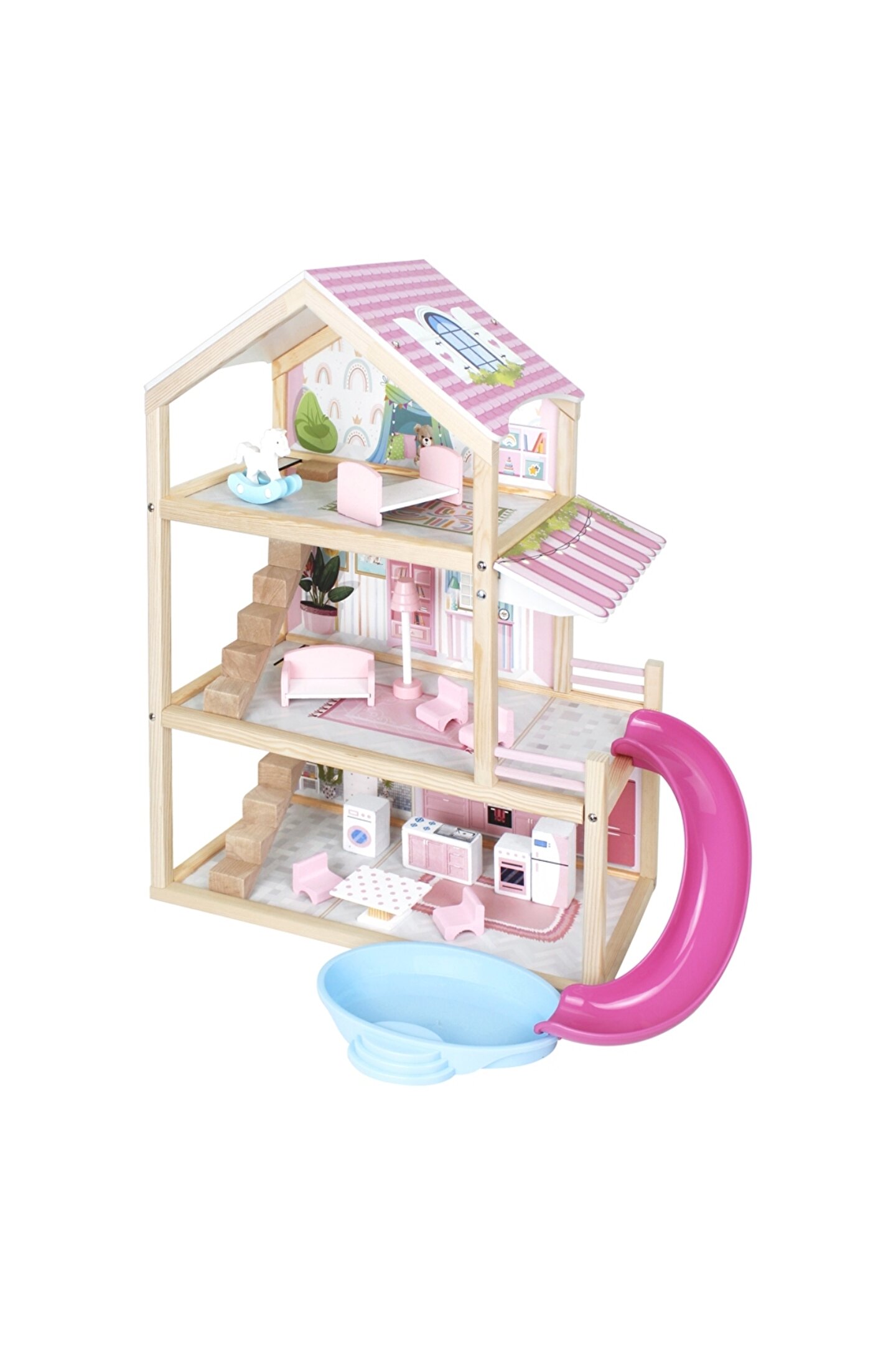 Doğan Oyuncak Dünyası Lüx Ahşap Kaydıraklı Oyun Evi - Ahşap Tatil Evi - Havuzlu Oyun Evi - Ahşap Ev - Ahşap Oyun Evi