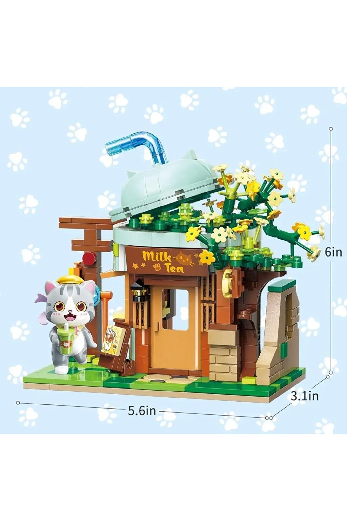 Bu kedili çay mağazası seti, onu küçükler için gerçekçi ve etkileyici hale getiren çok yaratıcı detaylarla yapılmıştır.