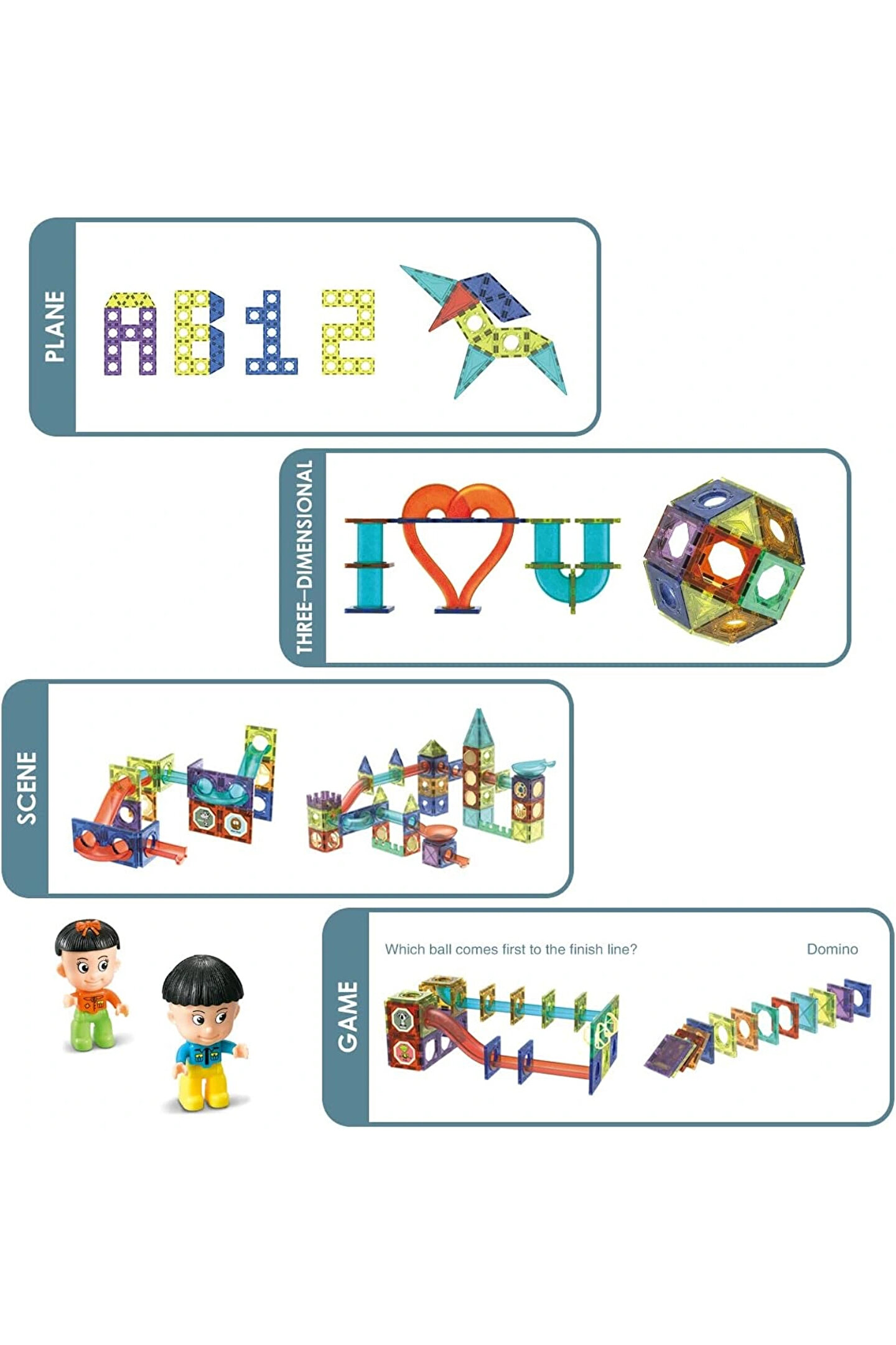 Dayanıklı malzemeden üretilen bu set, güçlü mıknatısları sayesinde kolayca birleşiyor ve çocukların diledikleri yapıları güvenle inşa edebilmelerine olanak tanıyor.