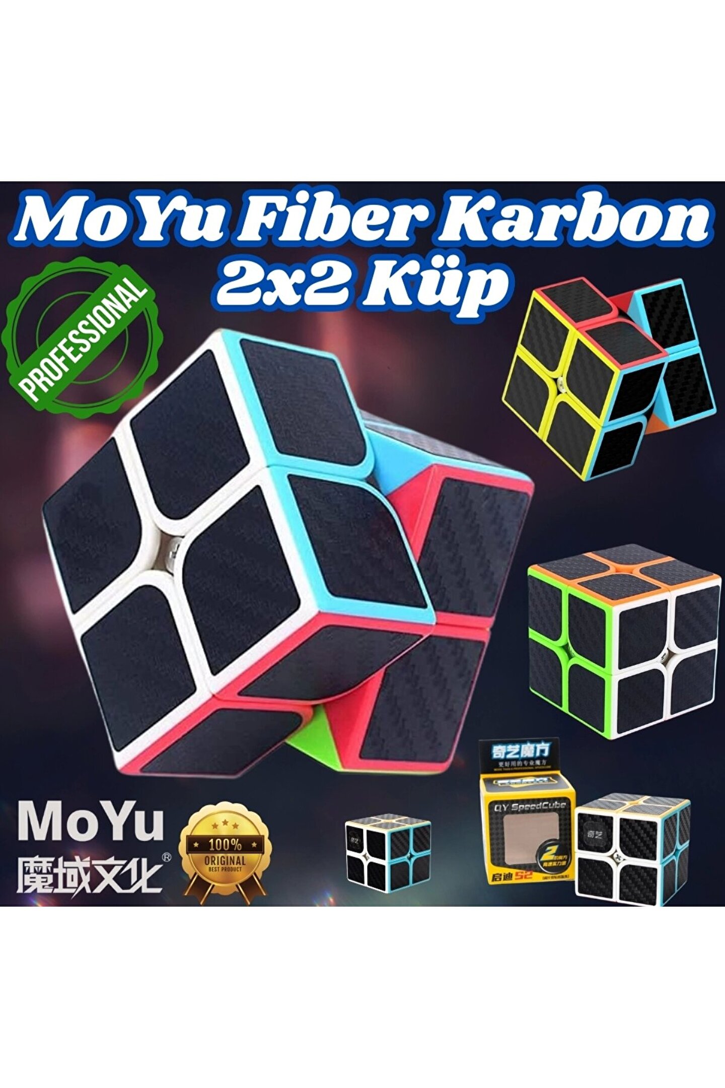 Orijinal MoYu Fiber Karbon 2x2 Küp - Moyu Speed Cube - Moyu Fiber Karbon 2x2 Zeka Küpü - Zeka Küpü -