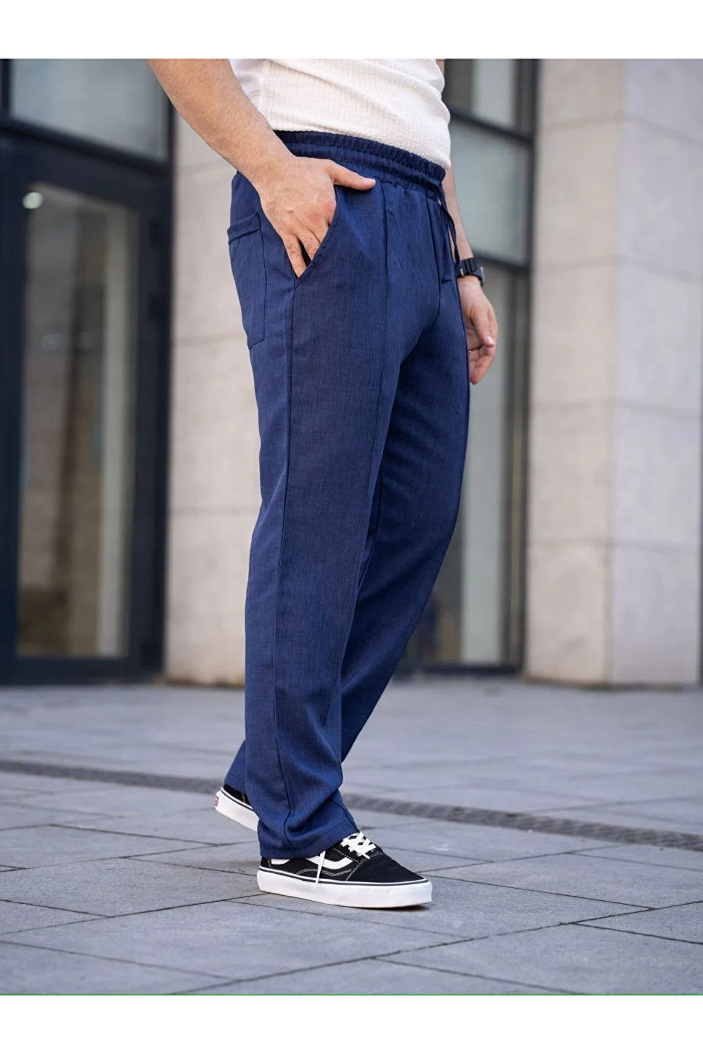 DoğruFashion Erkek Keten Cepli Çıma Dikişli jogger Buggy Pantalon Rahat kalıp - Lacivert