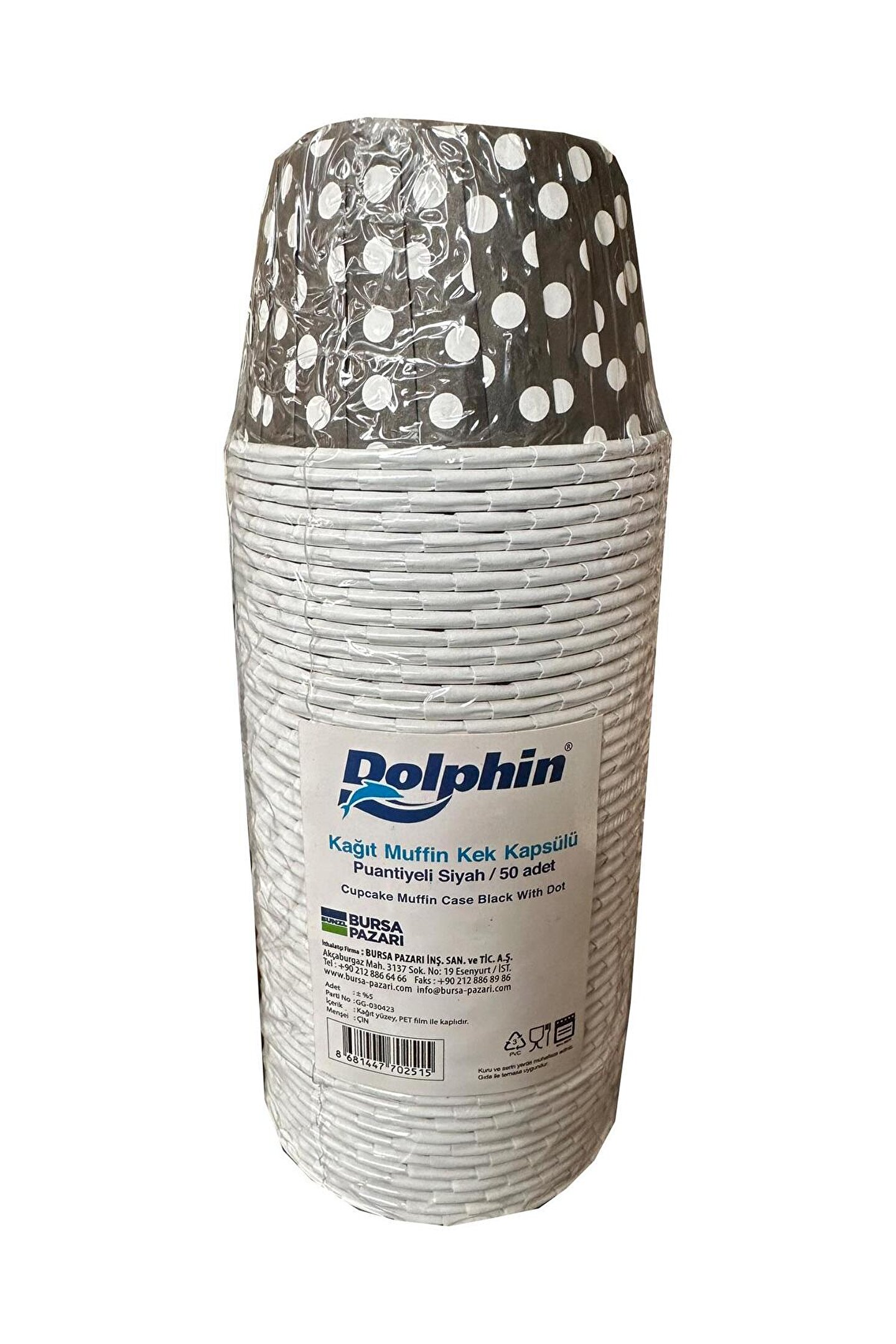 Dolphin Muffin Kağıt Karton Siyah Puantiyeli Cupcake Kek Kalıbı Kapsülü Kabı - 50 Adetlik 1 Paket