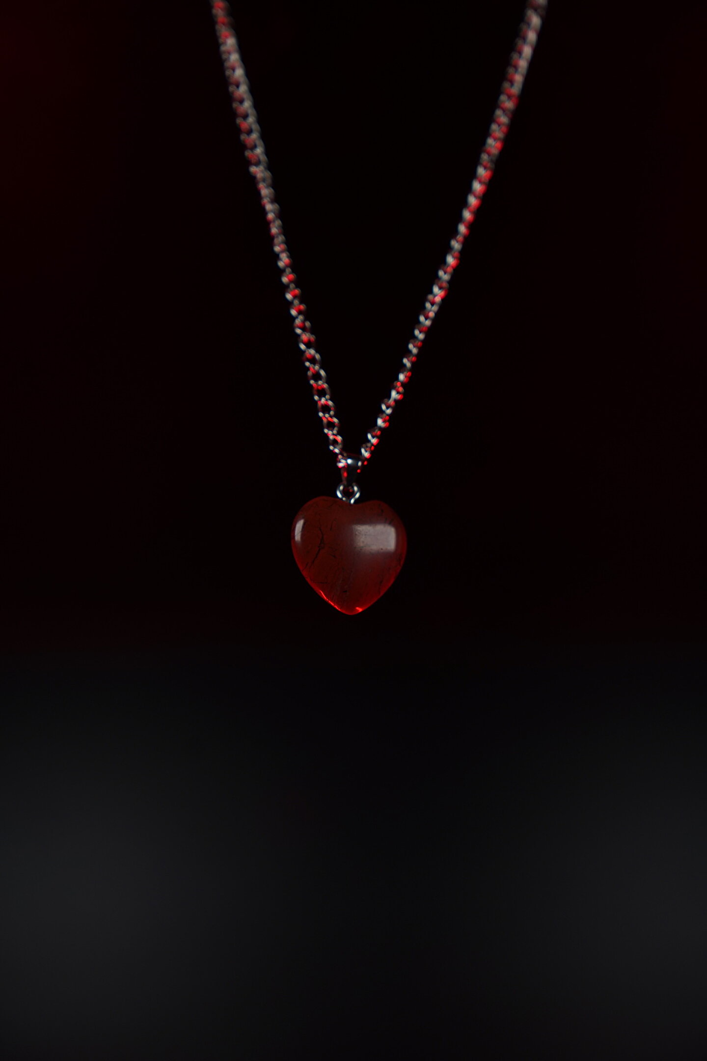 Kırmızı Jasper Doğaltaş Kalp Kesim Kolye