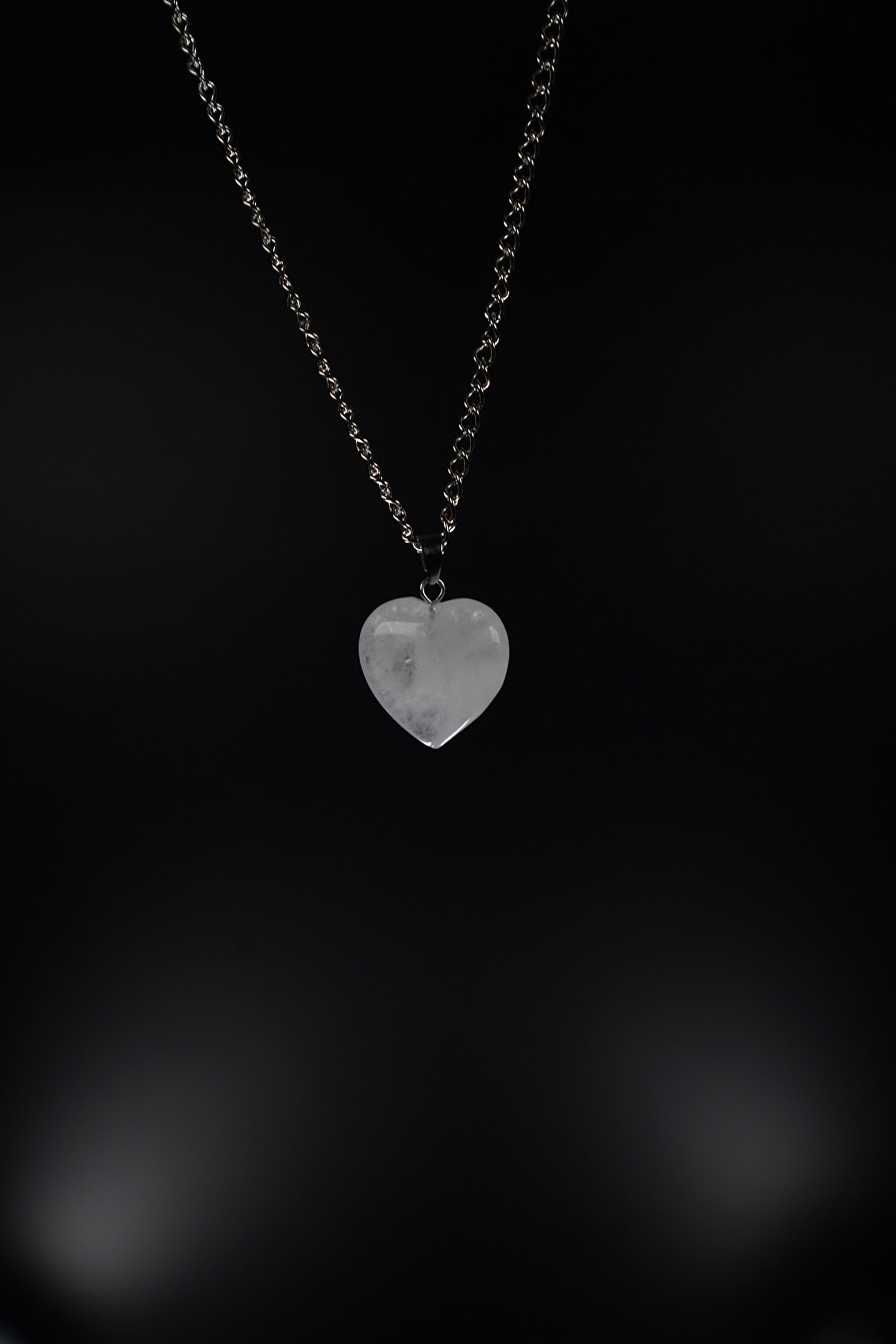 Kristal Kuvars Doğaltaş Kalp Kesim Kolye