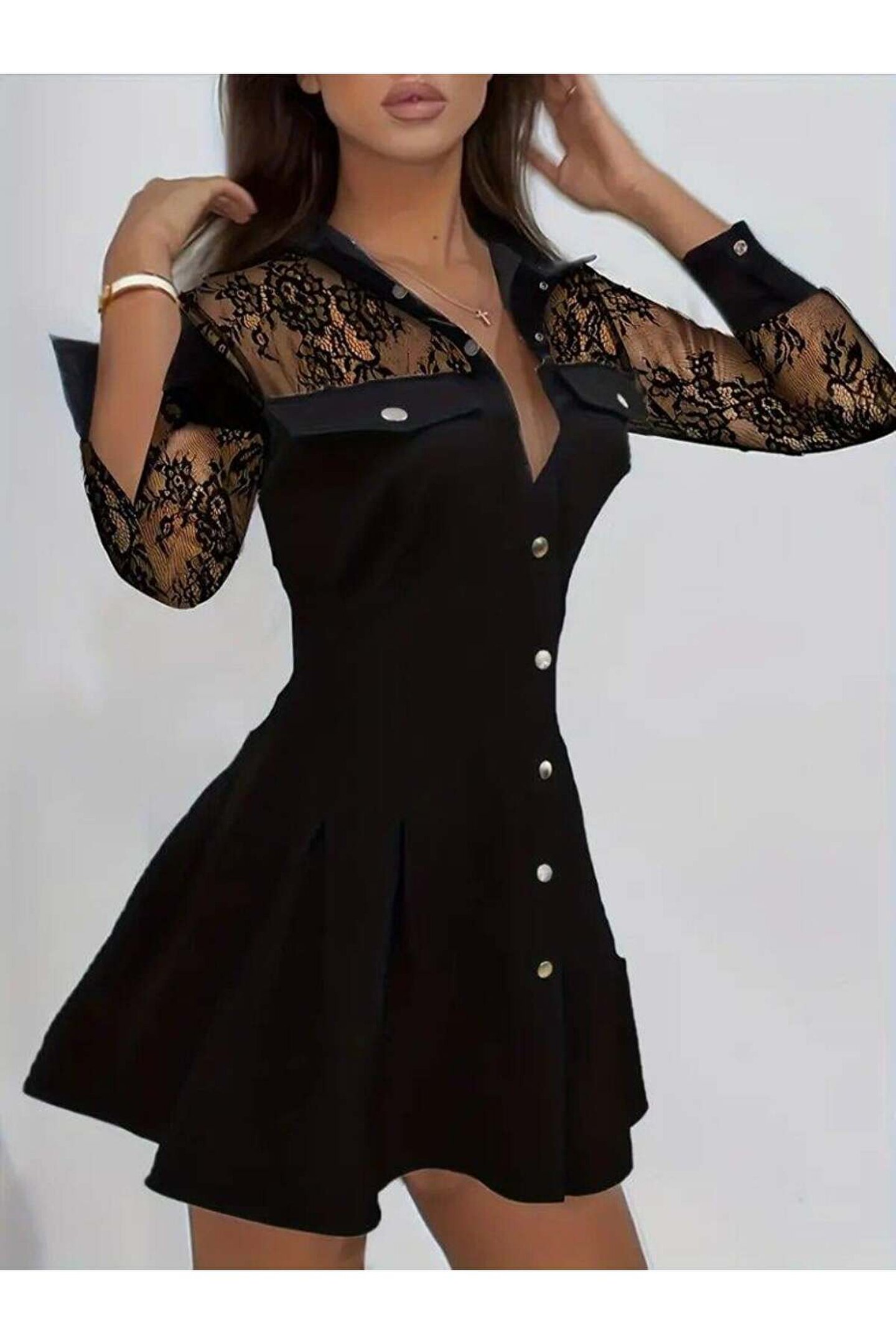 Kadın Uzun Kollu Yakalı önden Düğmeli Cep Detaylı Mini Modal Elbise