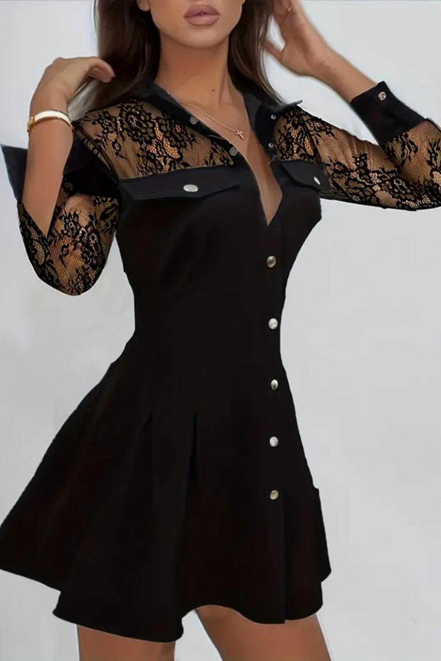 Kadın Uzun Kollu Yakalı önden Düğmeli Cep Detaylı Mini Modal Elbise
