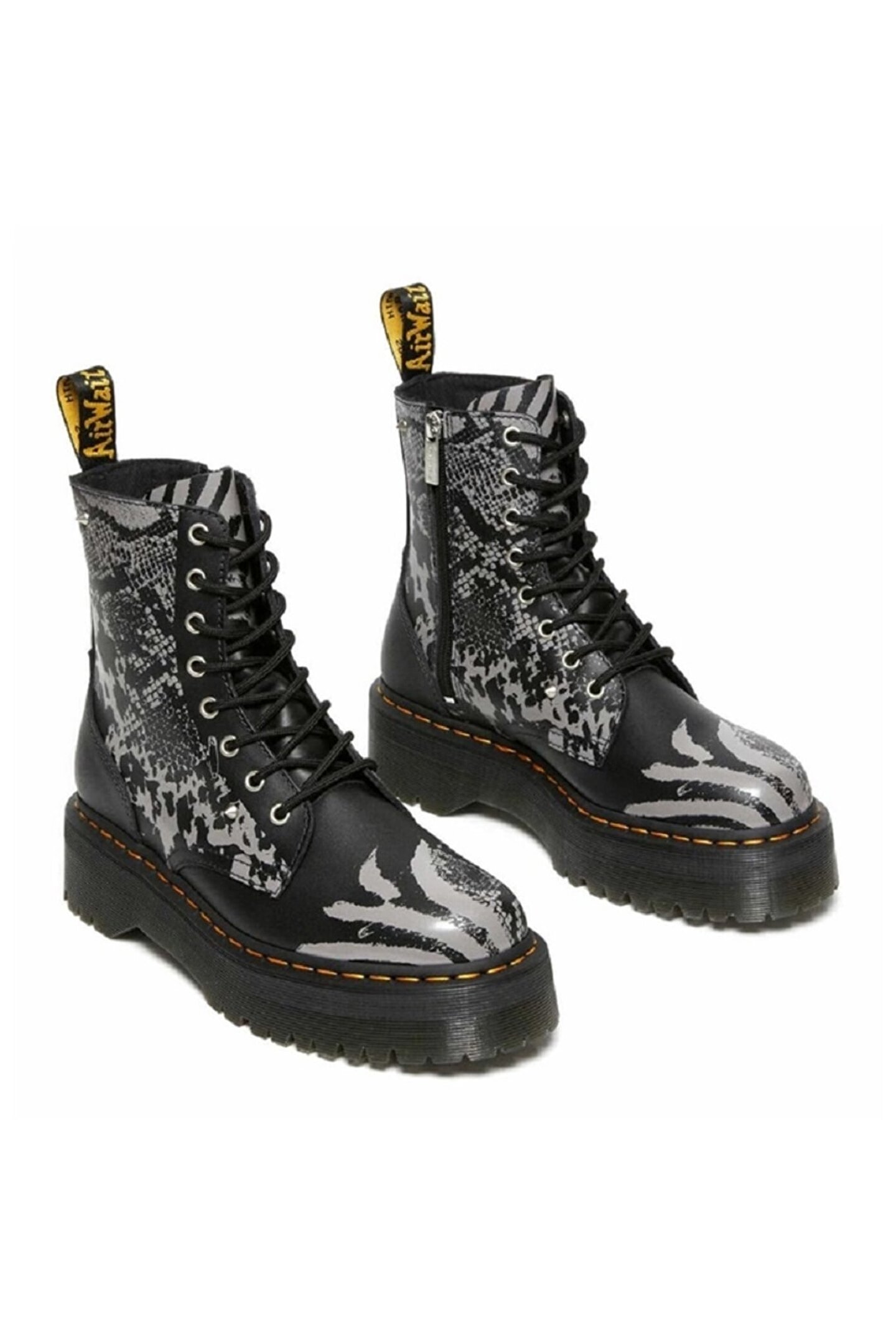Malzeme: Deri ; Dış Malzeme: Deri ; Tek Malzeme: Kauçuk ; Topuk Tipi: Düz ; Kapatma: Dantel Up ; Dr. Martin'e özgü baskılı hayvan desenlerine sahip bağcıklı bot. Üst kısımda leopar, zebra ve parlak baskılı pankish bir kaplamada bir Sürüngen deseni bulunur. Çivili sırt askısı JADON, Dr. Marten'in klasik 8H botlarının ve kalın bir tabanın temelidir. Popüler bir özellik, botların yan fermuarlarla yapılmış olması, giyilmelerini ve çıkarılmalarını kolaylaştırmasıdır. Botun yakasına tutturulmuş imzalı bir topuk halkası ve kaynakta sarı dikişler vardır ;
