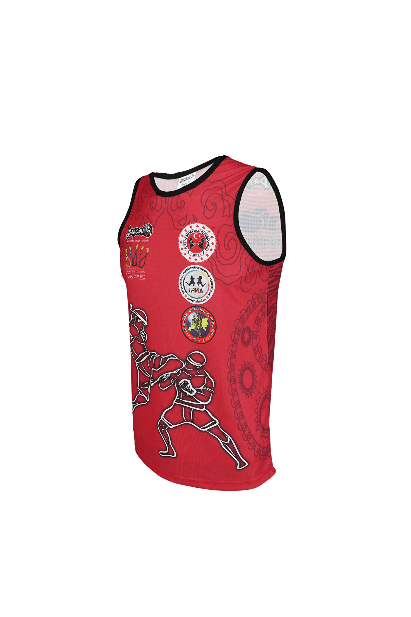 Dragon Muay Thai Federasyon Logolu Atlet -Muay Thai Atlet Likralı Kumaşından imal edilmiştir. ; -Atletin ön kısmında MuayThai Federasyon Logosu - İFMA (International Fedaration of Muay Thai Ametour) ve EMF (EUROPEAN Muay Thai Federation) logoları mevcuttur. ; -Arkasında Muay Thai Boks Yazısı Mevcuttur. ; - Kırmızı ve Mavi renk seçenekleri mevcuttur.;