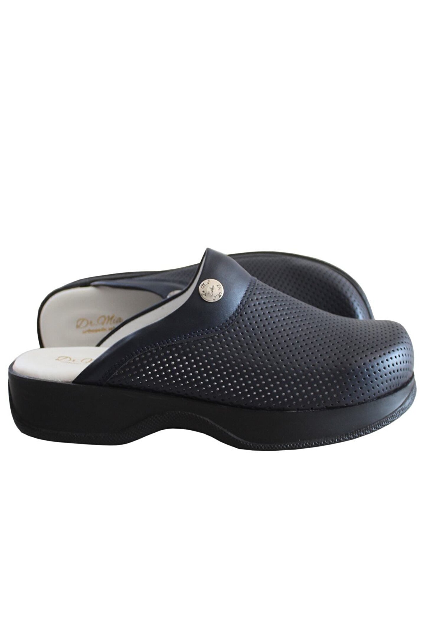 klasik Doktor ve Hemşire Terliği Renk: Lacivert – Siyah - Beyaz Tip: Delikli terlikler, sağlık, pastane, mutfak, temizlik çalışanları ve diğer iş sektöründeki çalışanların tercih ettiği bir üründür sabo terlikler ayak tabanındaki 5 nokta düşünülerek üretildiği için ayak konforu sağlamaktadır ve ayak sağlığını korumaktadır. ; terliklerin konforu sayesinde kullanıcılar daha az yorulmakta ve ayakları rahat etmektedir. ; Özellikler: - Uzun süre ayakta çalışanlar için özel olarak üretilmiştir. ; - Özel olarak işlenmiş suni deriden hazırlanmıştır ve bu sayede ayağınızın hava almasını sağlamaktadır. ; - Tabanda kullanılan malzeme, ıslak zeminlerde kaymayı önleyici özellik taşır. ; - İç taban malzemesi ayak boşluklarına tam uyum sağlarken yumuşak yapısı ile konforlu kullanım sağlar. ; - Poliüretan kaymaz tabandan yapılmıştır. ; Temizleme Şekli: sabo terliklerin temizleme işlemi ılık ve nemli bir bez yardımıyla yapılmalıdır, terliğin temizlenmesinde kesinlikle alkollü bez, pamuk veya ıslak mendil kullanılmamalıdır. ; NOT: Terlikleri dönüşümlü olarak kullanmanız hem terliğinizin kullanım ömrünü uzatır.;