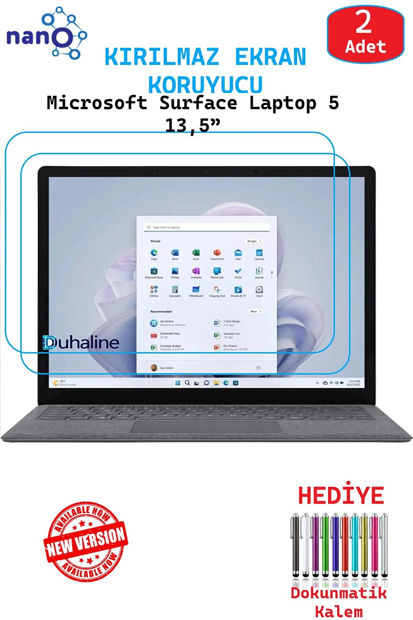 DUHALINE 2 ADET Microsoft Surface Laptop 5 13,5 İçin Tam Uyumlu Ekran Koruyucu Cam Nano HD Esnek Kırılmaz