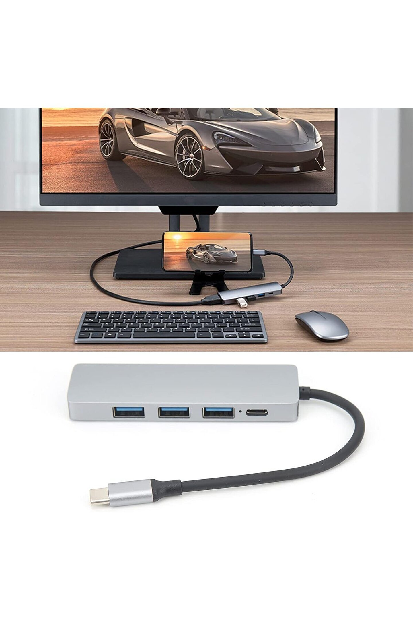 5in1 Tablet Telefon Uyumlu Macbook Pro Air için Type-C to USB 3.0 Hub Dönüştürücü Çevirici Çoklayıcı 4K Hdmı PD Şarj+Data Girişli