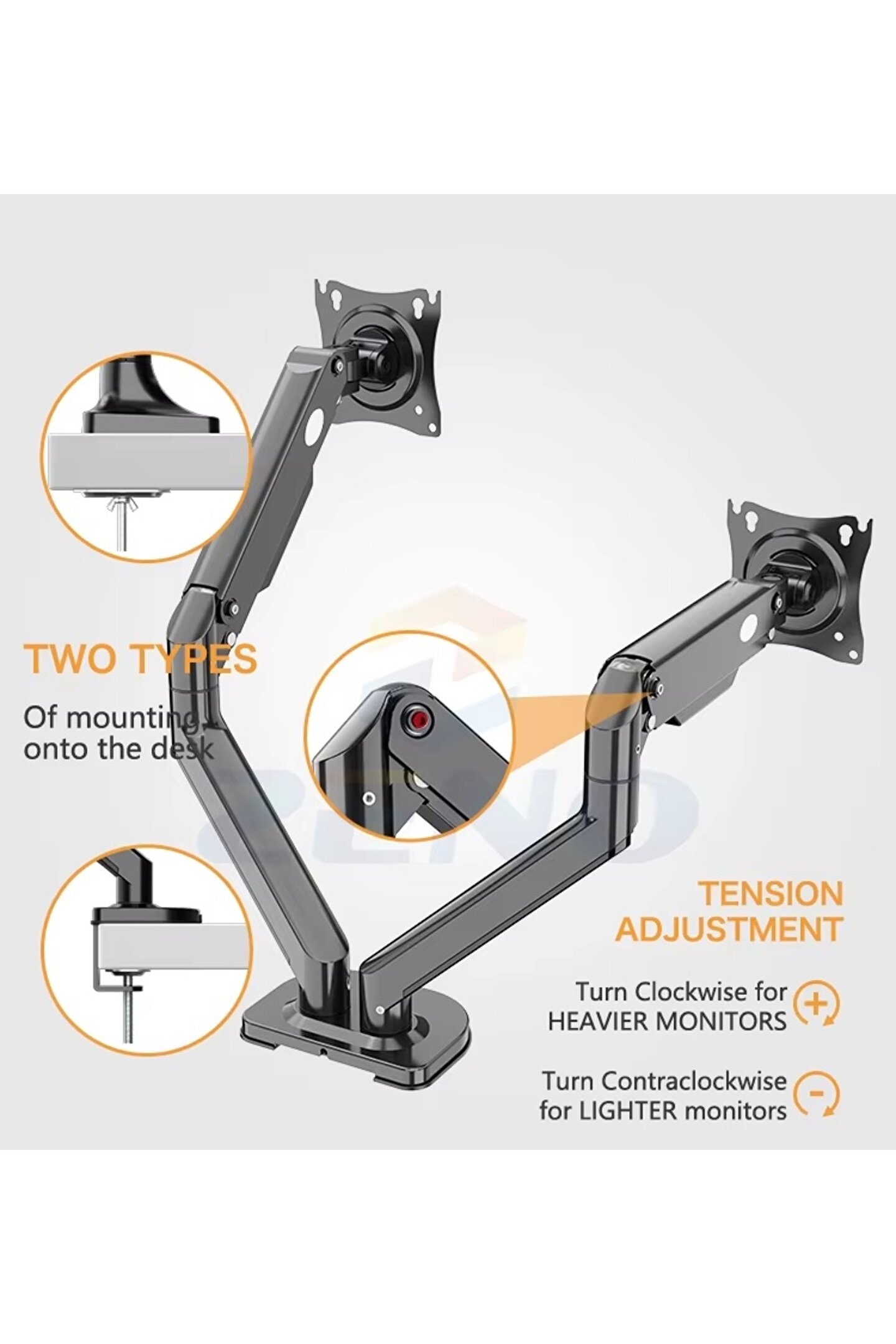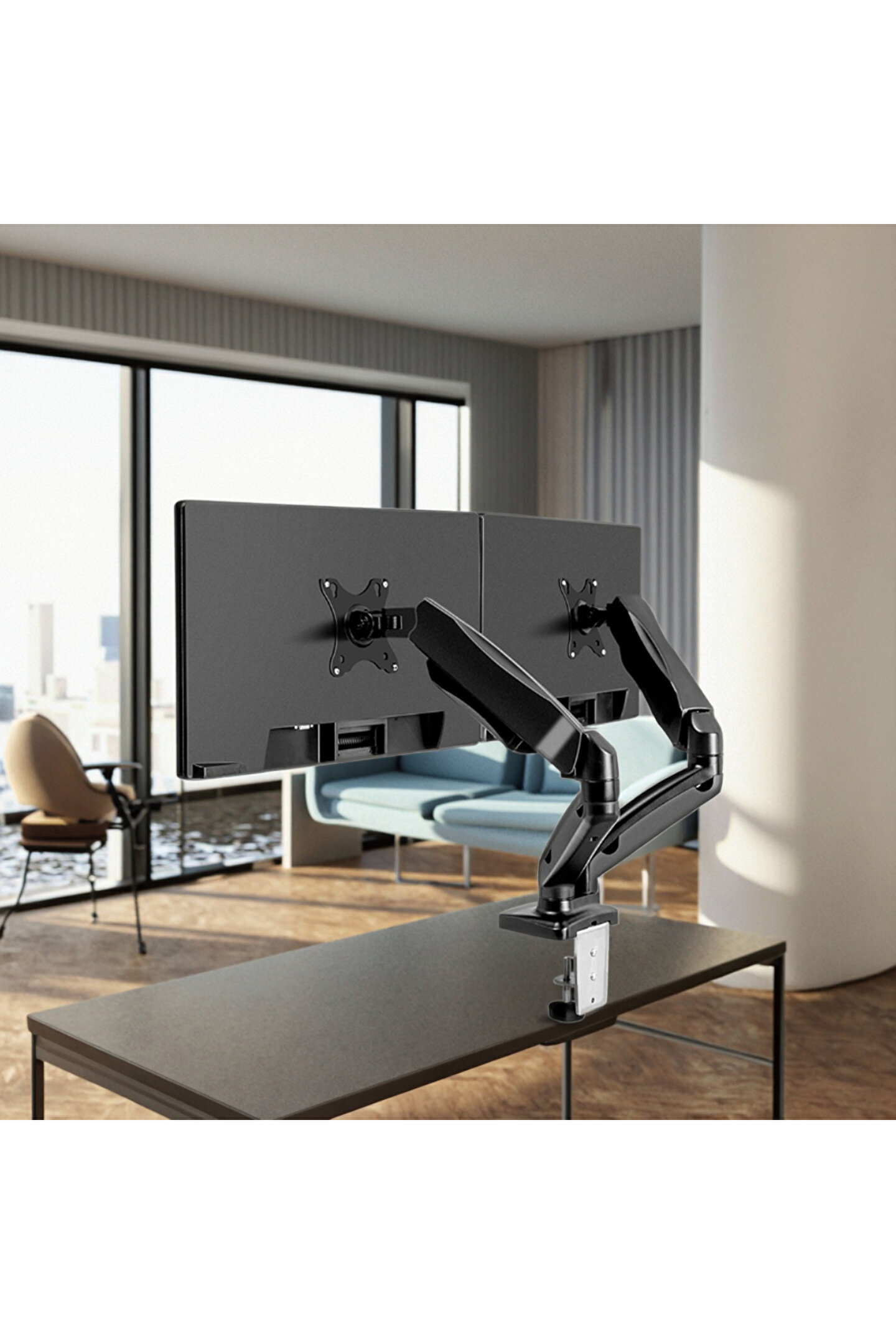 Amortisörlü Çift Monitör Standı 17-32 inç | Gazlı Amortisörlü İkili Monitör Kolu | Tam Hareketli VESA Uyumlu Tutucu