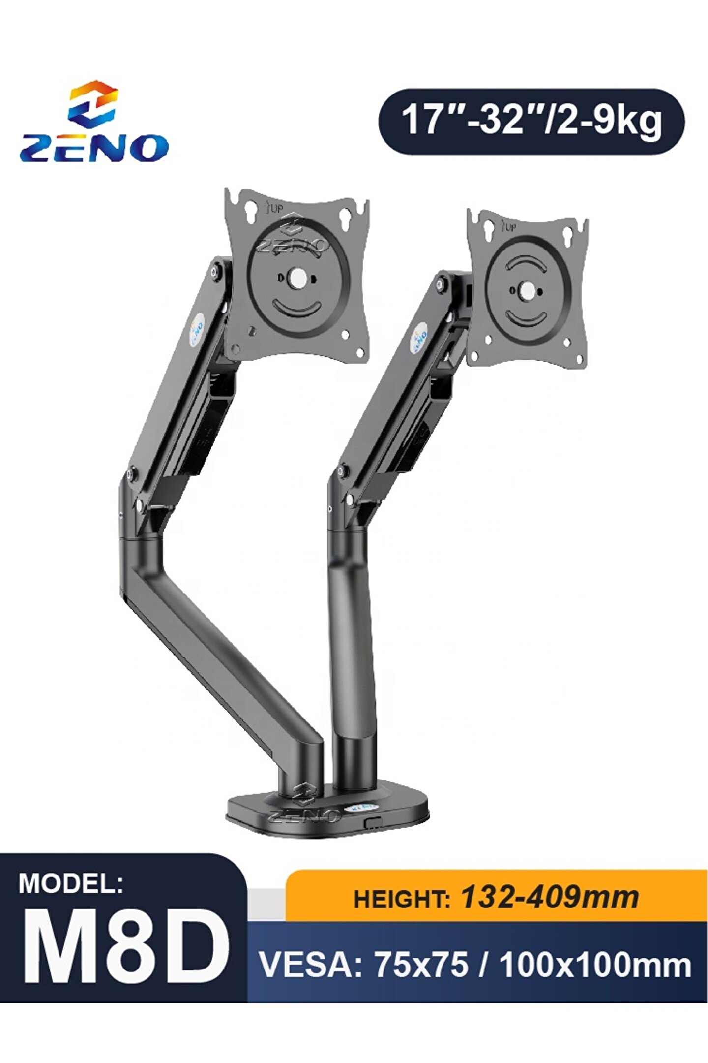 İkili Amortisörlü Monitör Kolu 17-32" | Tam Hareketli Ergonomik Masaüstü Monitör Askı Aparatı