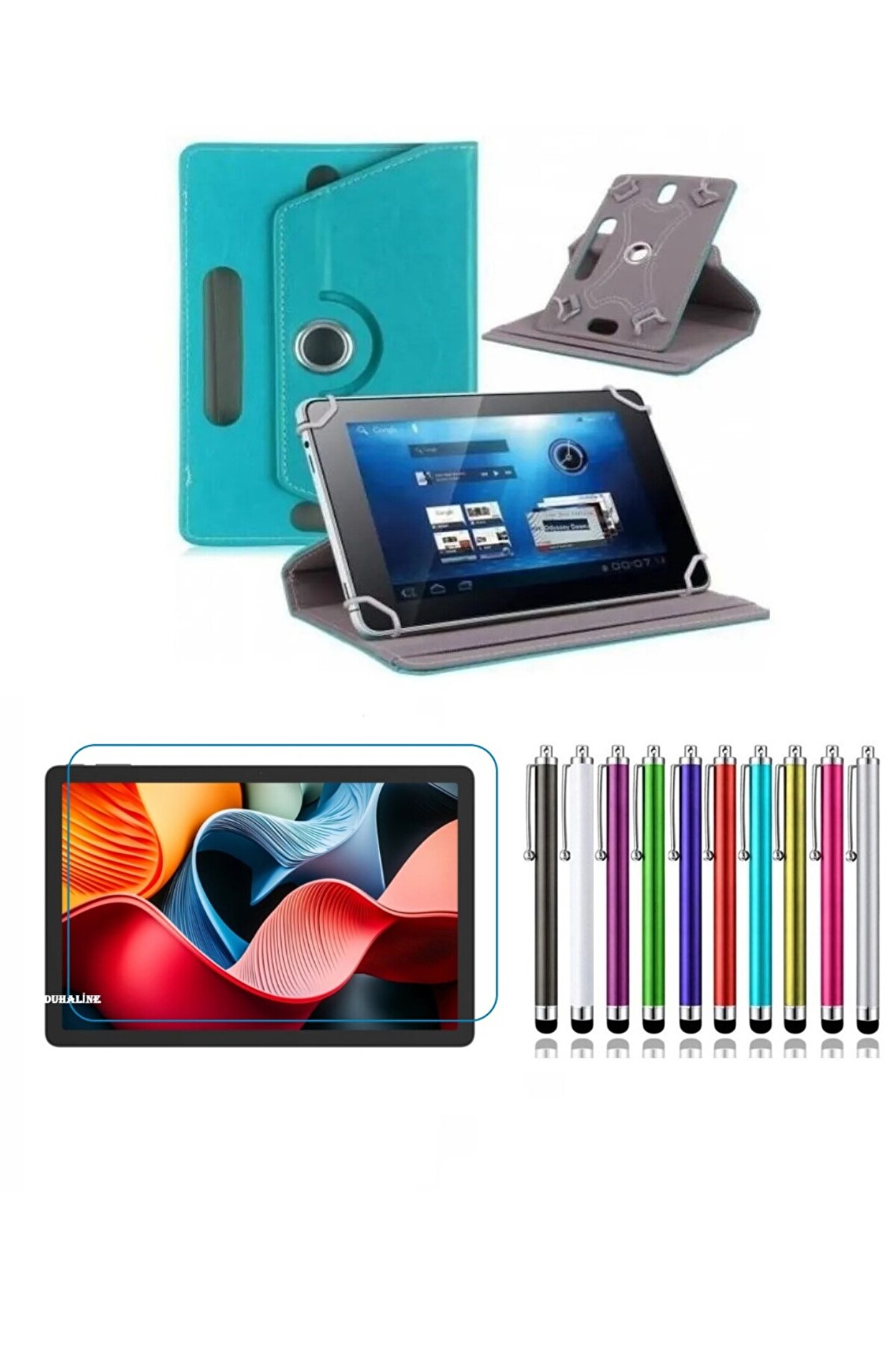 DÖNER STANTLI TABLET KILIFI + NANO KIRILMAZ EKRAN KORUYUCU CAM + DOKUNMATİK KALEM